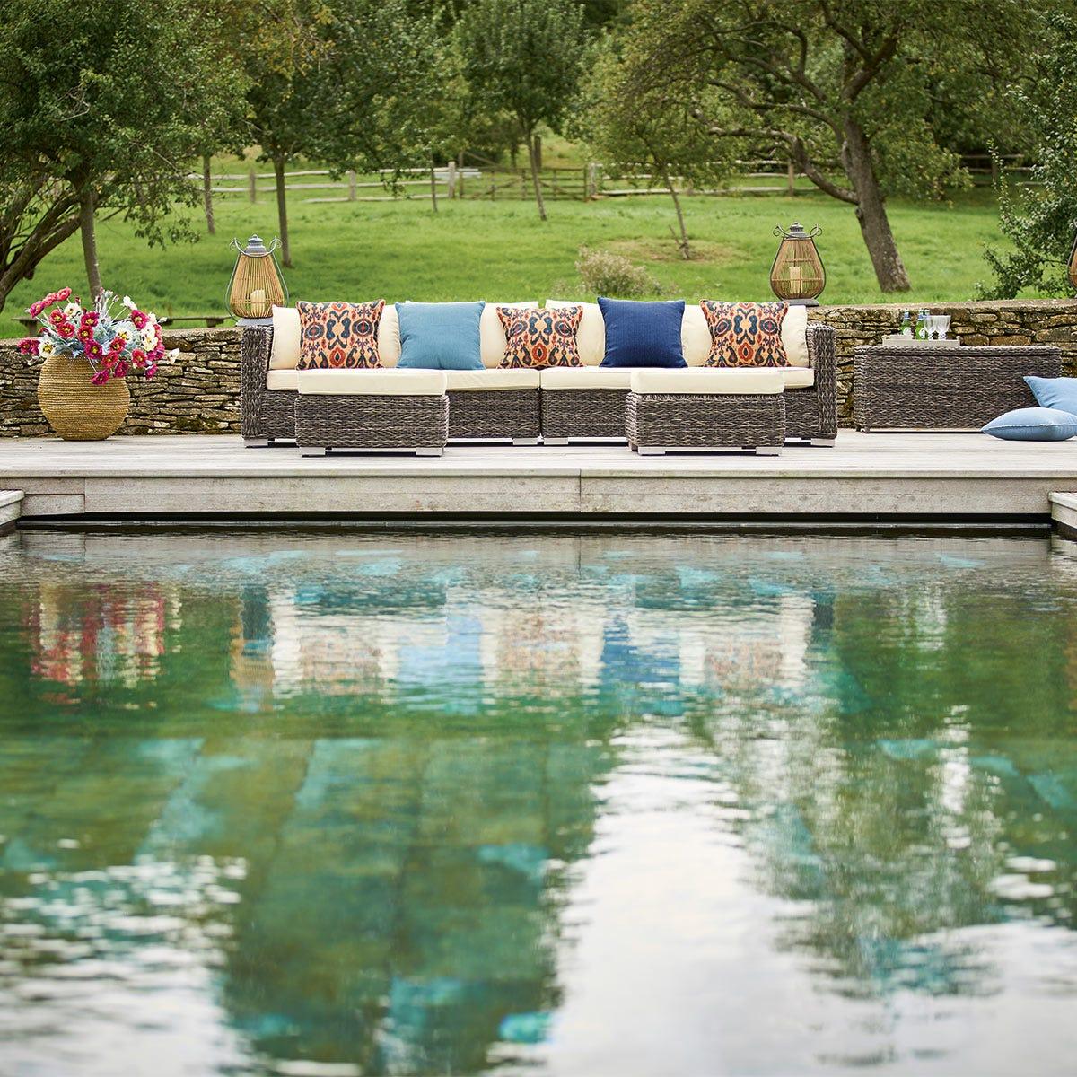 The Luccombe corner works beautifully in relaxed, coastal, or boho-inspired interiors, thanks to its mix of rattan and soft, neutral cushions. I love it for creating outdoor-living vibes in a conservatory or garden room, or as a statement piece in a casual living space. Its flint grey tone is versatile and lends itself well to layered textures and natural materials. Practical styling tips include pairing it with light, embroidered cushions and a chunky throw for added comfort, while a low coffee table or side tables can complete a casual, inviting setup. This piece is very adaptable, making it ideal for both indoor and outdoor zones where comfort and style are equally important.