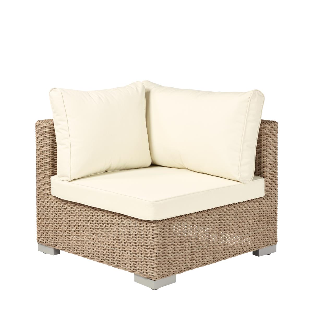 Designed to work with other modular pieces from the Luccombe Garden Collection, this corner/end unit features simple clean lines, a low back and deep, off-white, weather-resistant cushions. It can also be used on its own as a stool or footstool, or combined with other pieces to create modular outdoor seating, making the Luccombe range ideal for more contemporary outdoor spaces, such as a city roof terrace or poolside patio.