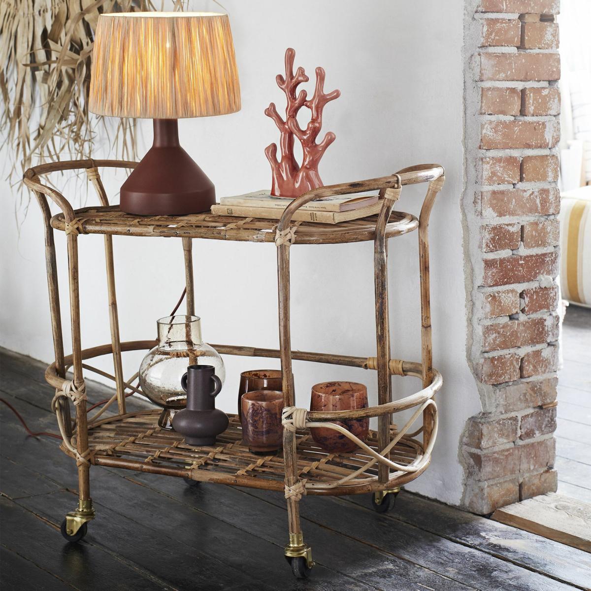 Fashion fresh fruit cocktails atop this tropical bamboo trolley, crafted from iron and bamboo and conveniently transportable so you can enjoy delicious drinks in every room of the house or in the garden.