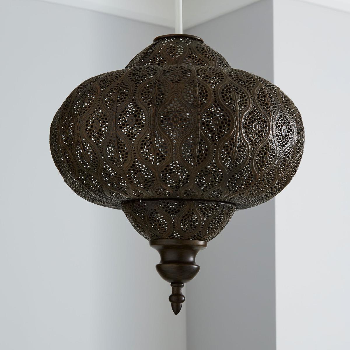 Bring a Moroccan twist to your home décor with the delicately crafted Lucena Pendant shade. This easy to fit pendant features a pressed metal design with an intricate cut out detail and comes in a warm, bronze finish.