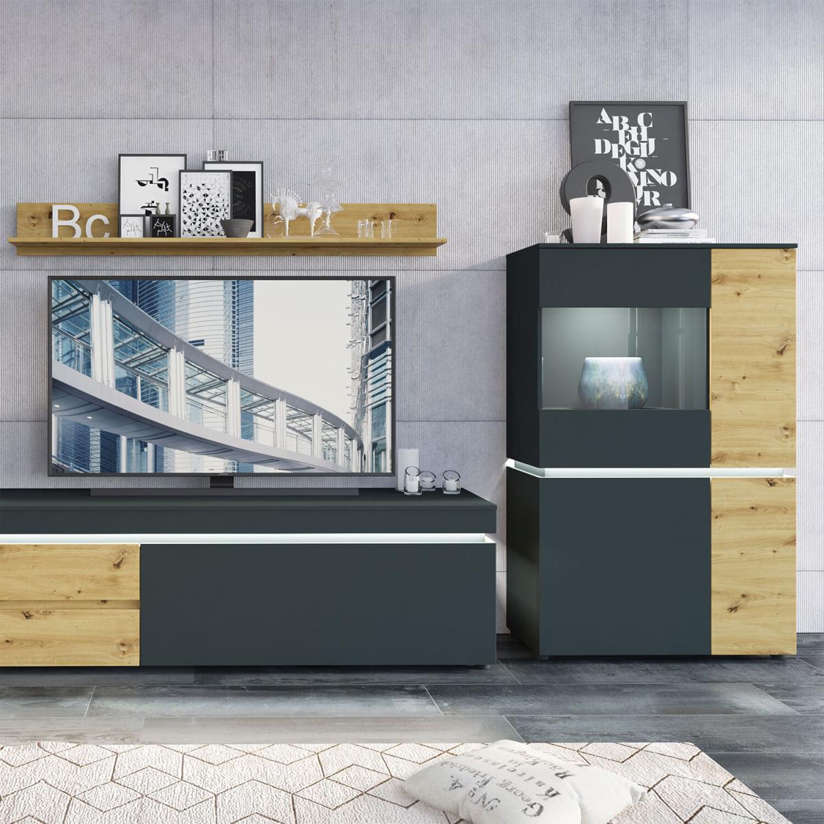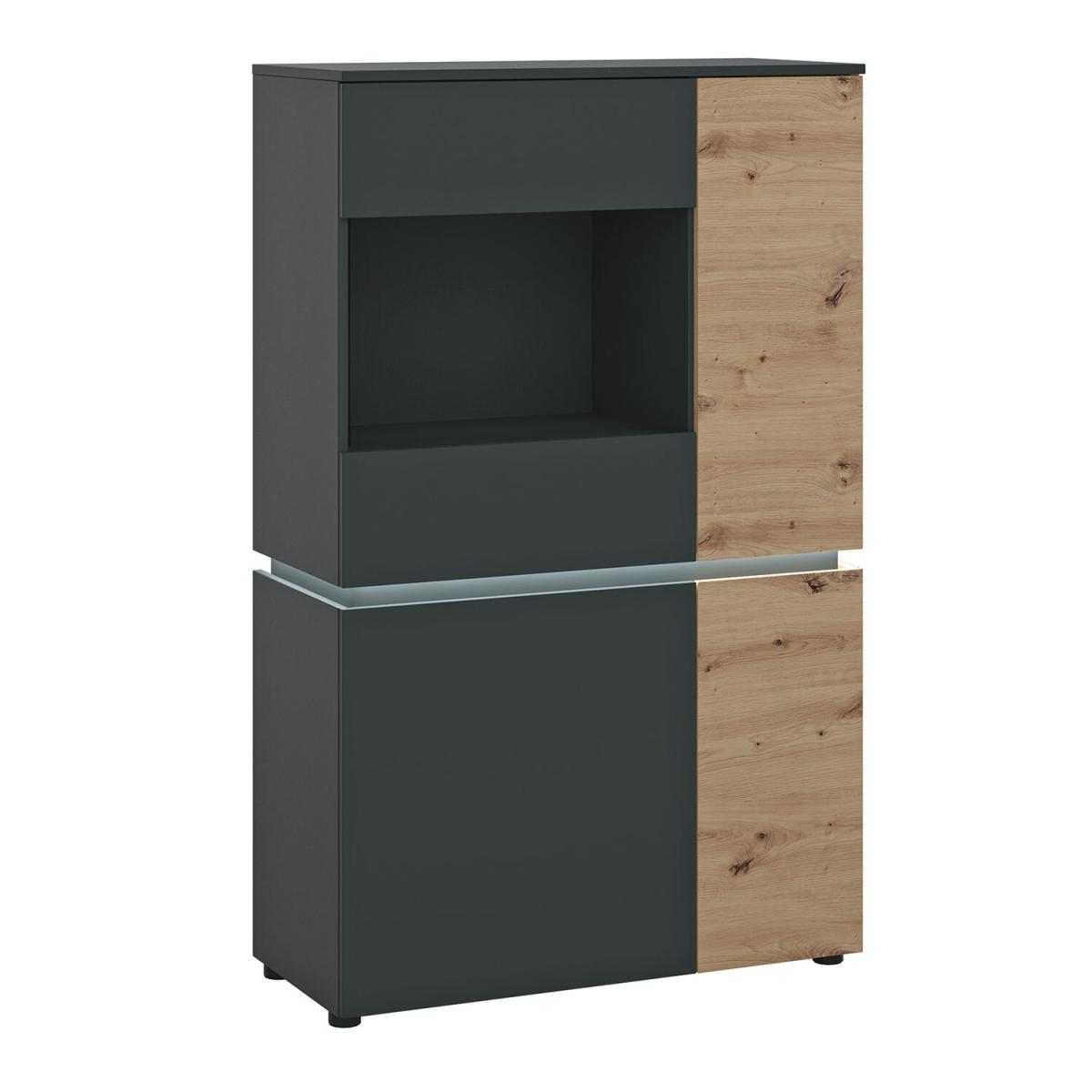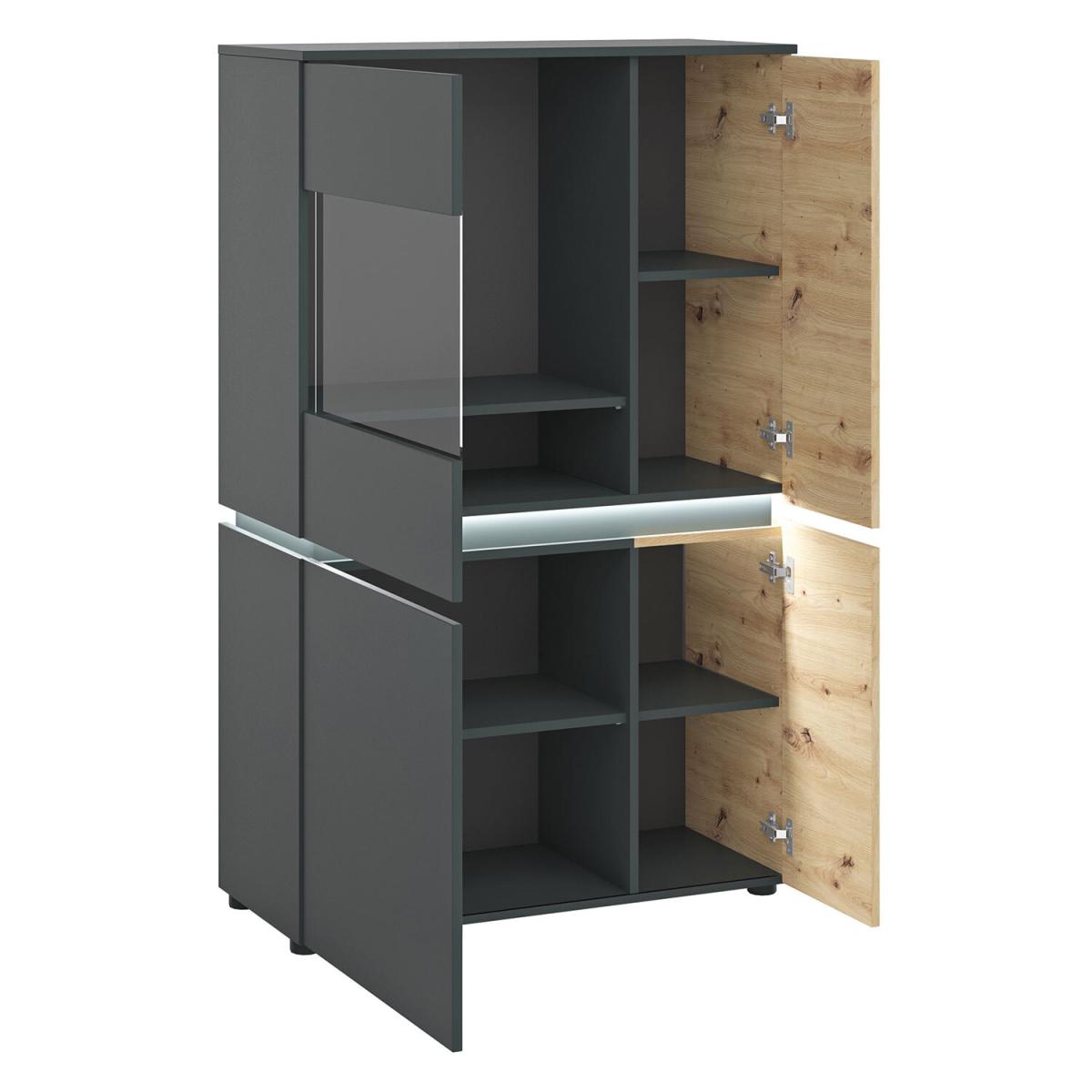 The simplicity of the Luci 4-Door Low Display Cabinet and the combination of trendy colours adds timeless style to the Luci collection. This modern vitrine features eight compartments, which are perfect for storage. The unit has an ergonomic handleless solution, soft-close accessories and tempered glass – this combination gives you convenience and safety. The Luci collection features integrated lighting (included), which makes it look unique; you can additionally illuminate the inside of the vitrine by purchasing optional lighting (sold separately). The piece is made of laminated chipboard that's resistant to damage, scratching, moisture and high temperatures.