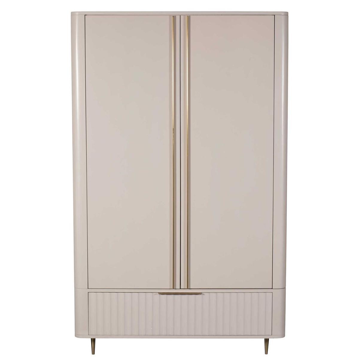 Design. Turn your bedroom into a luxury boudoir with the beautiful Lucia 2 Door Wardrobe. Its classic ivory white body, elegantly finished with subtle brass handles and feet, sets the tone for a timeless look. Complete with hanging rail, shelf and drawer, the Lucia 2 Door Wardrobe offers plenty of storage space to keep your space looking tidy.