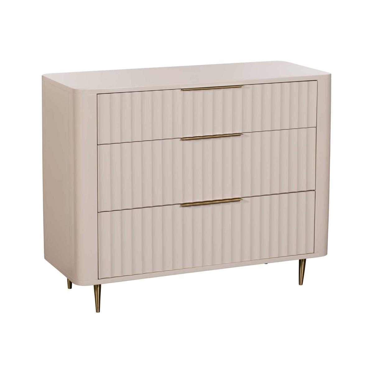 Standing atop dainty brass legs is the Lucia 3 Drawer Chest, bringing classic modern flair and plenty of storage space to your bedroom. The detailing to the front of the drawers and the beautiful ivory white colouring mixes classic French style with a more contemporary twist.