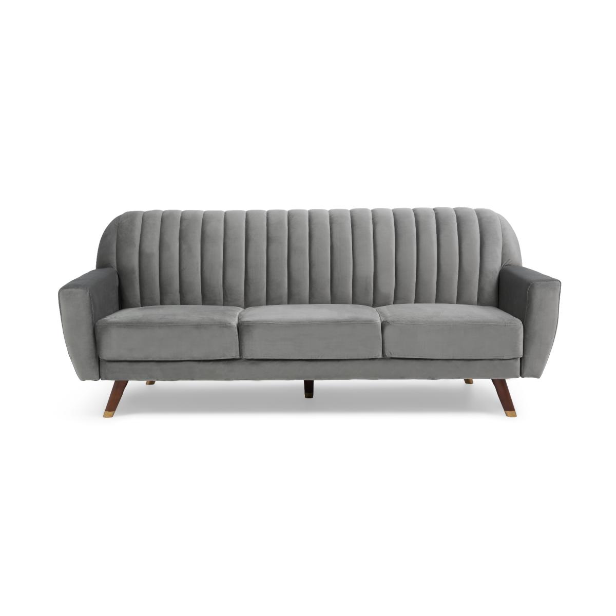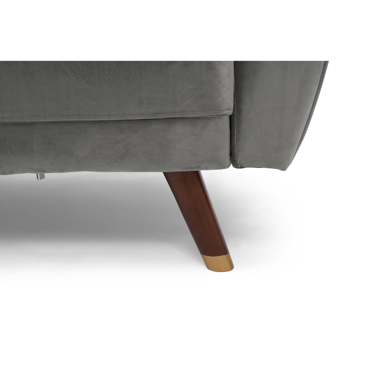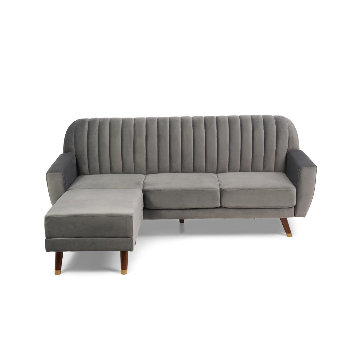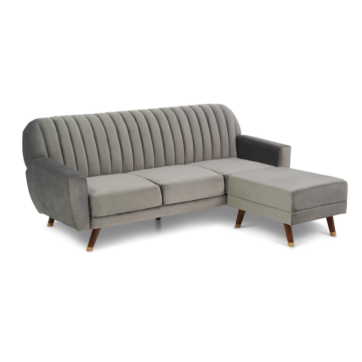 A stunning focal piece for your living room or spare room, the statement Velvet Lucia Sofa Bed in our lush Grey Velvet offers a striking lined design, curved edges, 3 plump and soft cushioned seats and a separate ottoman feature. Handily opening out into an additional bed, to then be effortlessly be hidden and stored again. Modern and eye-catching in design. Deep lines to the back add retro detailing. Upholstered in a lush, sumptuous Grey Velvet. Comes with an additional Velvet ottoman section. Opens out into a functional bed. Also available: Lucia Grey Linen Sofa Bed Additional Measurements:Seat Depth:55cm Seat Width: 185cm. Seat Height:15cm Armrest Width:15cm Backrest Height:50cm Floor to Seat Height:40cm Leg Thickness:5cm Chaise Depth:150cm. Chaise Cushion Depth:110cm