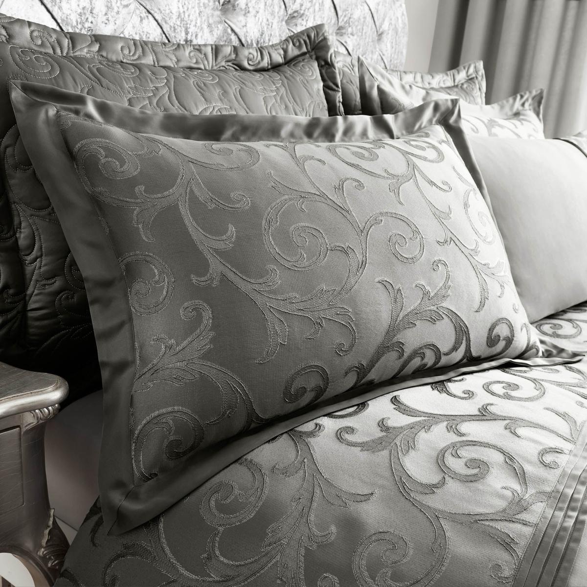 Bordered with a plain silver edge, our Lucia oxford pillowcase is decorated with a metallic scroll design and is made from a soft, hardwearing polycotton blend.