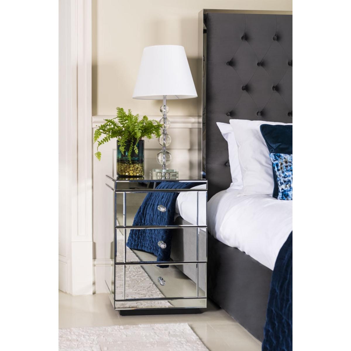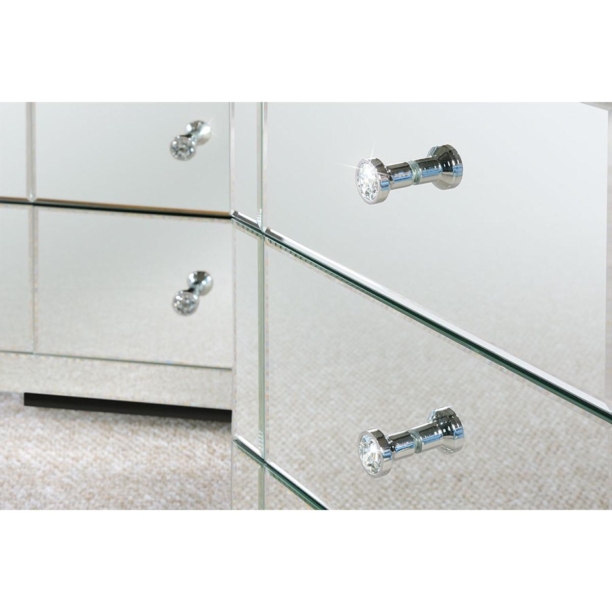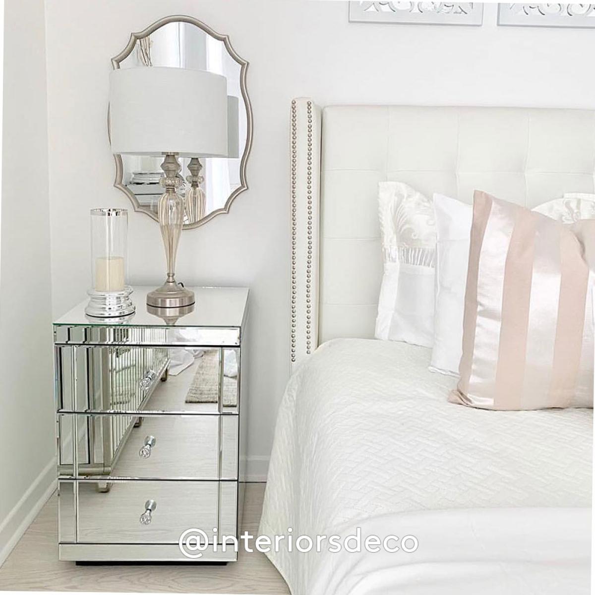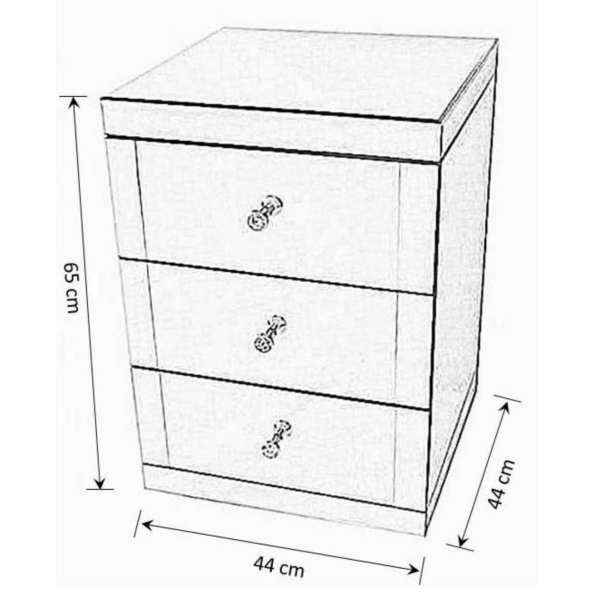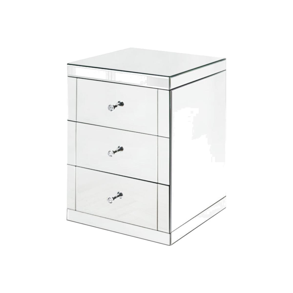 This elegant piece of furniture can be placed anywhere in the house and will look perfect with any style. Constructed with especially treated toughened mirror - nearly unbreakable. Handcrafted with the finest high quality materials with beautiful 4mm bevelled glass and crystal handles. The drawers are spacious, perfect for filling with clothes or other household items. This bedside table is part of our Chelsea range - in this range you will also find a matching dressing console (MADISON) , 3 drawer low chest (FLAVIA) and a tall boy. Please add extra 40mm for handles. Inner Draw Dimensions: H9. 5cm x W36. 5cm x D29cm. 4 mm Bevelled Mirror. Crystal. Handles. Weight 35kg each. Delivered Assembled.