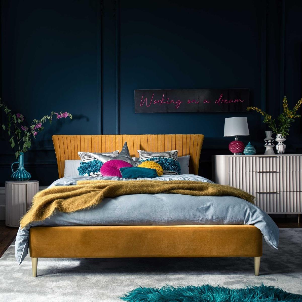 I love this bed frame for its elegant, streamlined design and versatility. The velvet finish adds a touch of luxury, making it a great choice for both contemporary and classic interiors. It works particularly well in bedrooms with a neutral colour palette or soft pastel hues, allowing the texture and subtle sheen of the fabric to stand out. For styling, consider pairing it with plush pillows, layered throws, and understated bedside tables to create a cosy yet refined look. Its simple, clean lines also make it easy to incorporate into more eclectic or minimalist schemes, offering a balanced focal point without overpowering the room. Practical tip-adding a statement headboard like this can shift the room’s aesthetic effortlessly, providing both comfort and sophistication.