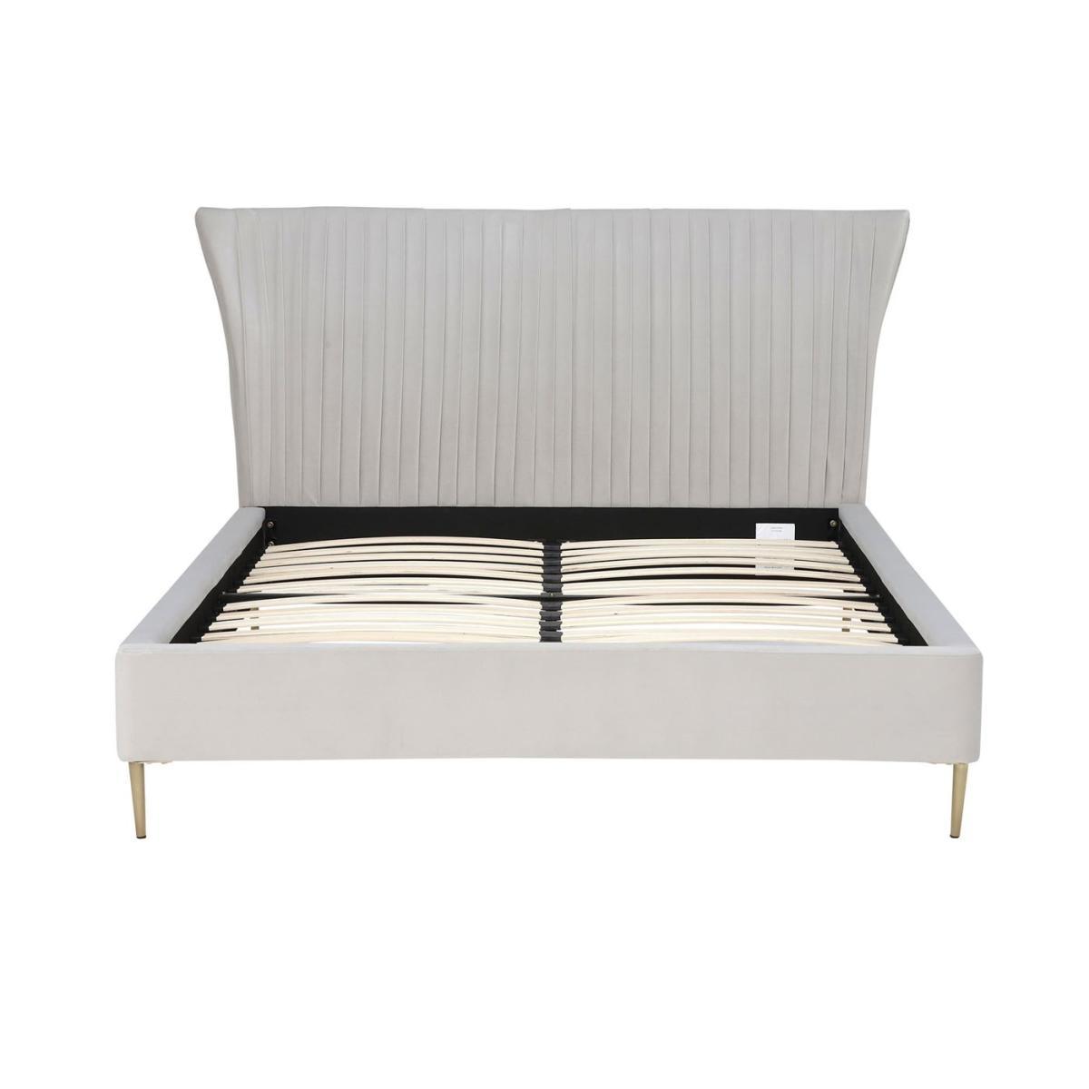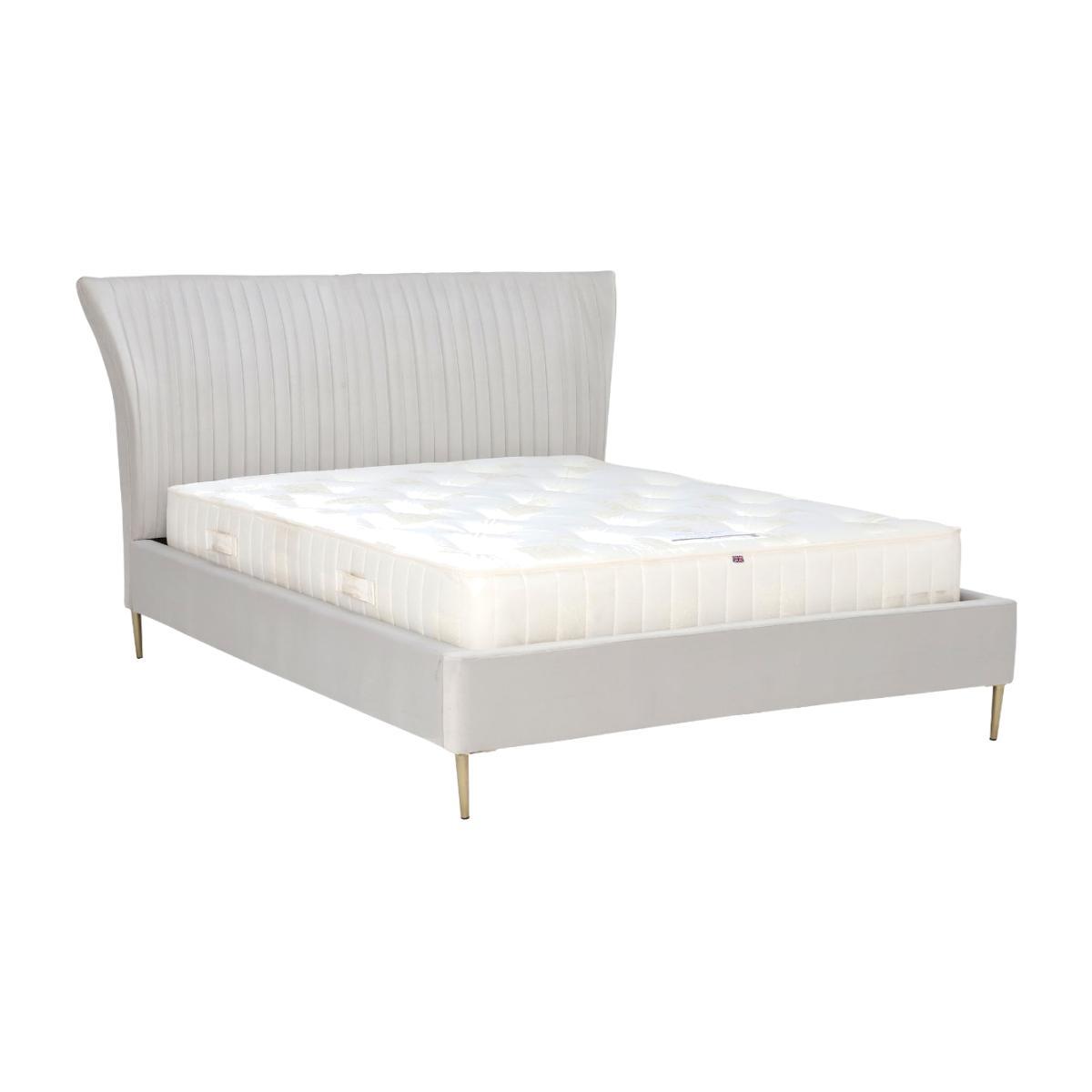 Design. There is no better way to make a bold statement in your bedroom than with the Lucia Velvet Bed Frame. With its stunning high headboard, made using luxurious velvet fabric to add that touch of opulence, the Lucia Bed Frame is available in a selection of colour options to suit your taste. The gold feet elevate the bed from the floor, creating the feeling of space and adding that modern finishing touch.