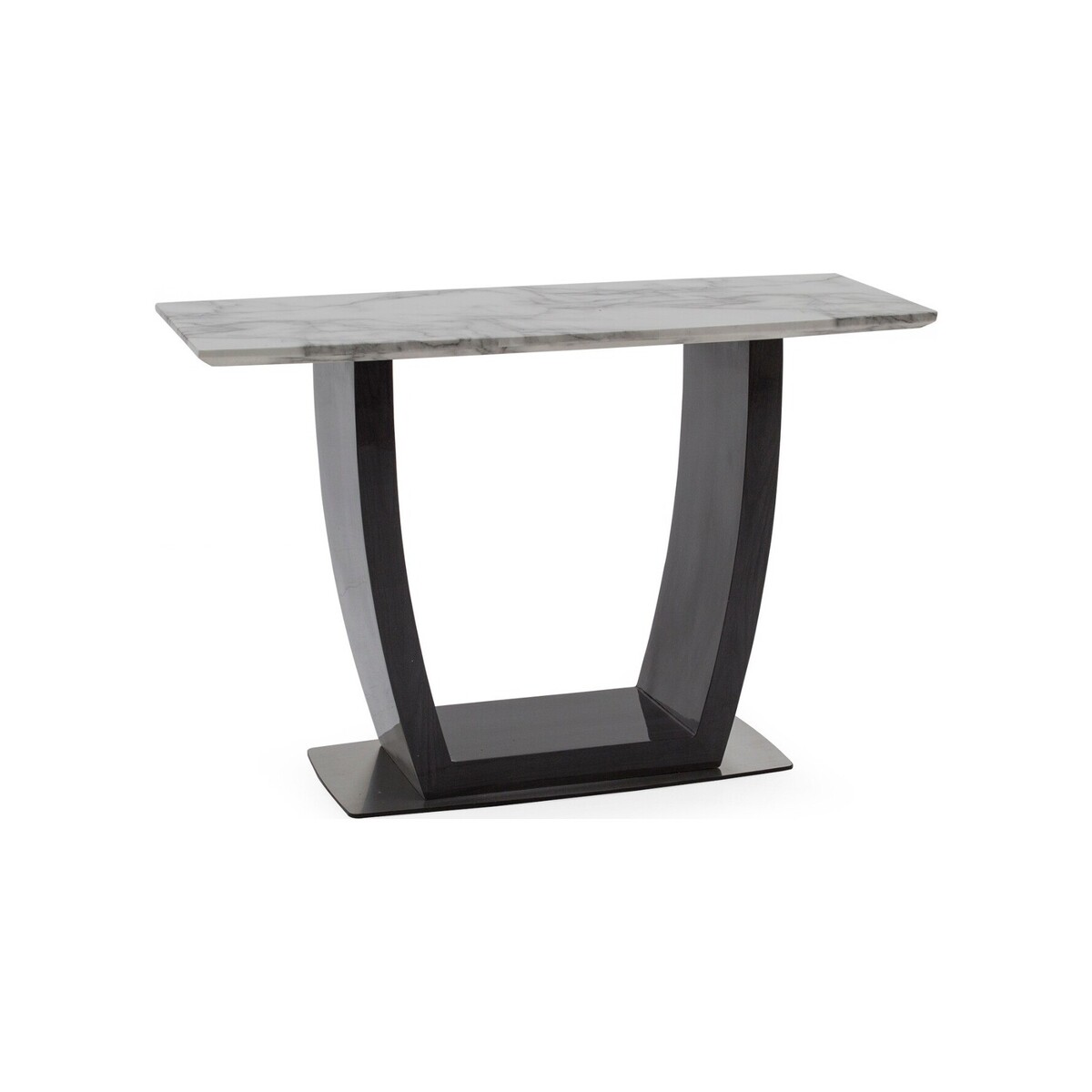 Every hallway needs a console table and not many pack the style points that the Luciana Console Table has in spades. Crafted with high quality materials including natural marble and dark brushed steel, this is the perfect addition to any hallway or living space to display flowers or art. The Luciana console table is dramatically different and will be the talk of your home. Stunning curved base gives a dramatic look. High quality materials - natural marble and a dark brushed steel finish off the luxe look. 12 month guarantee.
