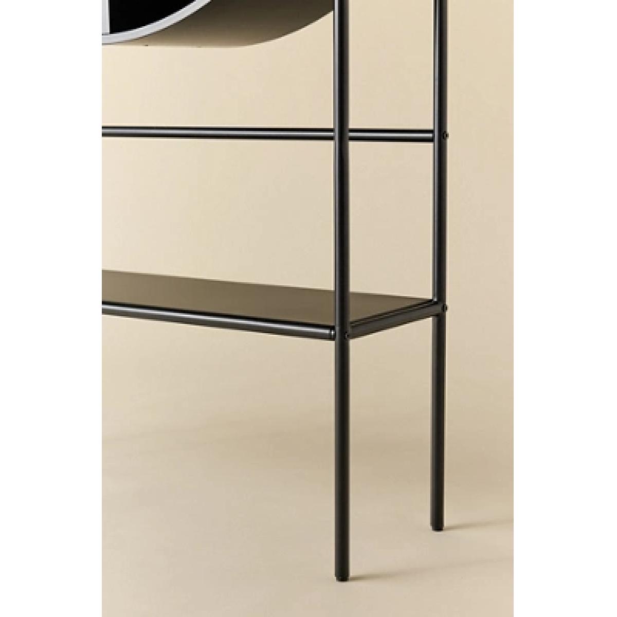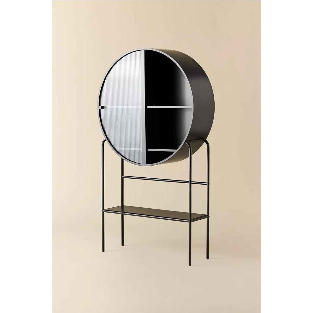 Add a contemporary storage solution to your space with the Lucie cabinet. Circular design atop a metal frame with an extra shelf. Includes a glass door on one side for a sheek finish. **Content + Care** \- Bentwood floor standing cabinet with a glass door and iron frame \- Wipe clean **Size** \- Product Dimensions: 30.2cm x 76.2cm x 147.3cm \- Leg Height: 87.9cm \- First shelf Height: 42.7cm \- Second Shelf Height: 31cm \- Product weight: 68.64 lbs \- Shipping Dimensions: 92.7cm x 85cm x 38cm \- Shipping weight: 80 lbs