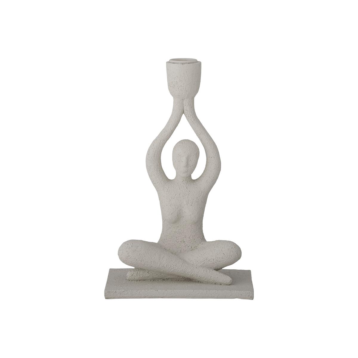 Flikka candlestick 21. 5 cm from Danish Bloomingville is a polyresin candlestick with a raw structure and depicts a woman in a yoga position. The candlestick is a sculpture in itself and looks lovely on its own or with a candle in it.