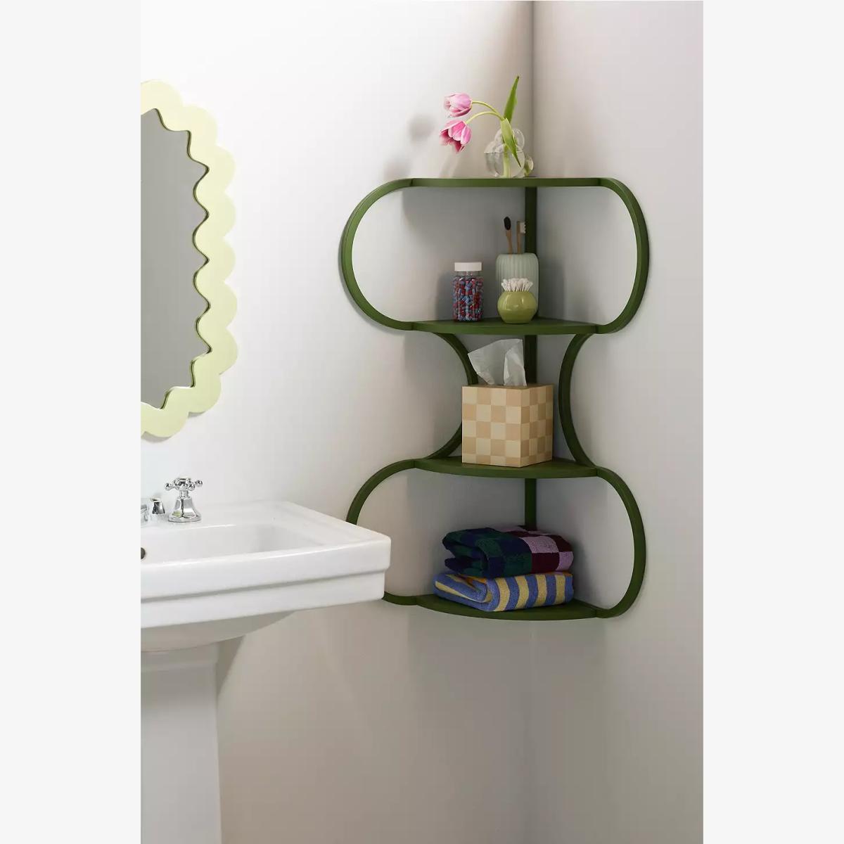 Create an artful display with this contemporary corner shelf. Crafted from colourful iron, it features a three tiers with squiggled framing. Available exclusively at Urban Outfitters. *Online return only. This item cannot be returned instore. Please note furniture items currently cannot be shipped to Northern Ireland or The Republic of Ireland. Delivery of large furniture items may take 1-2 weeks and are therefore not eligible for Next Day Delivery.* **Content + Care** \- 100% Iron \- Wipe clean **Size** \- Product Dimensions: D: 44.7cm x W: 44.78cm x H: 82.55cm \- Package Dimensions: D: 51.7cm x W: 9.5cm x H: 89.5cm