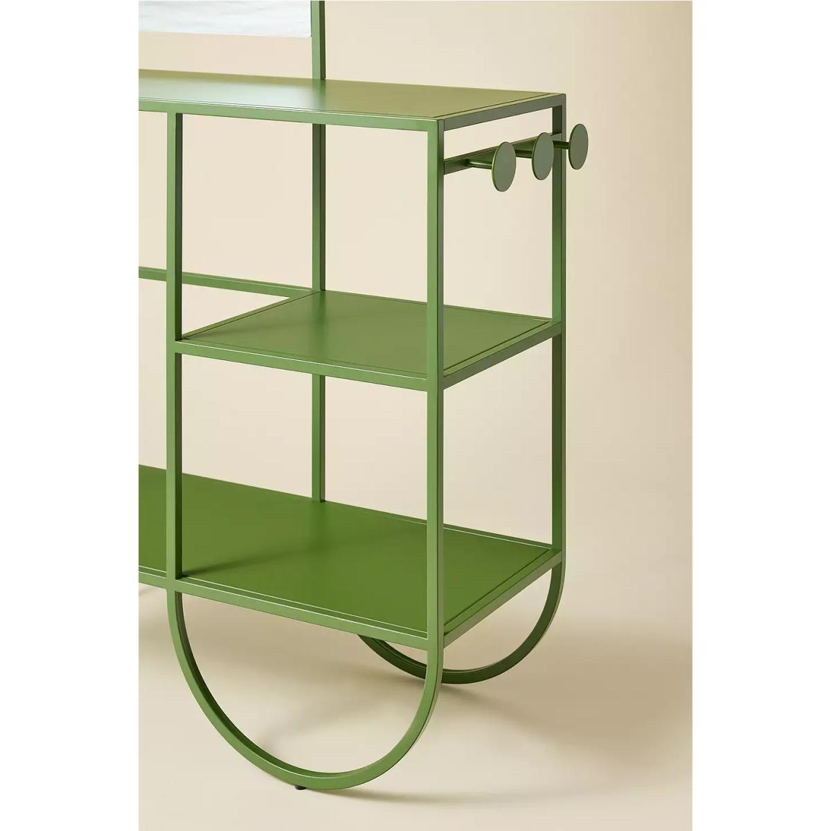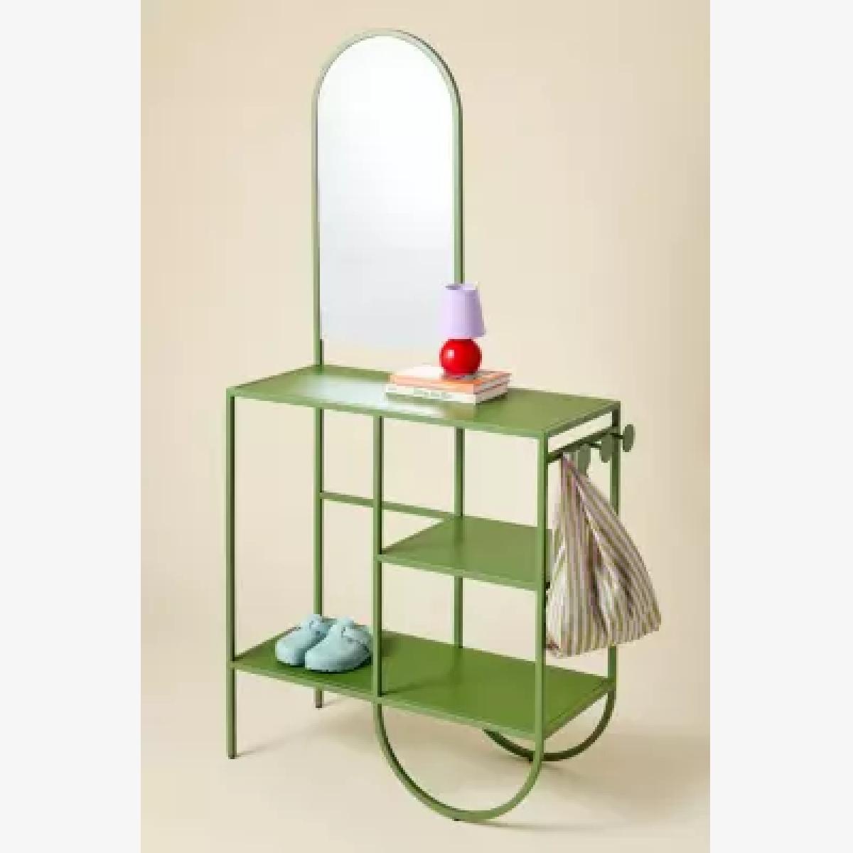 The perfect console table to keep your entryway or getting-ready space tidy, this storage furniture piece features an airy, asymmetrical silhouette with so many ways to store your daily essentials. This storage console features a built-in arch shaped mirror with a trio of tiers to store your shoes, books, bags and more. Complete with three hooks at the side to hang your bags and accessories. Available exclusively at Urban Outfitters. *Online return only. This item cannot be returned instore. Please note furniture items currently cannot be shipped to Northern Ireland or The Republic of Ireland. Delivery of large furniture items may take 1-2 weeks and are therefore not eligible for Next Day Delivery.* **Content + Care** \- Assembly required \- Iron \- Wipe clean \- Imported **Size** \- Dimensions: 38.1. D x 84.7W x 173.4. H cm \- Package Dimensions: 91.4. D x 19W x 103.2. H cm