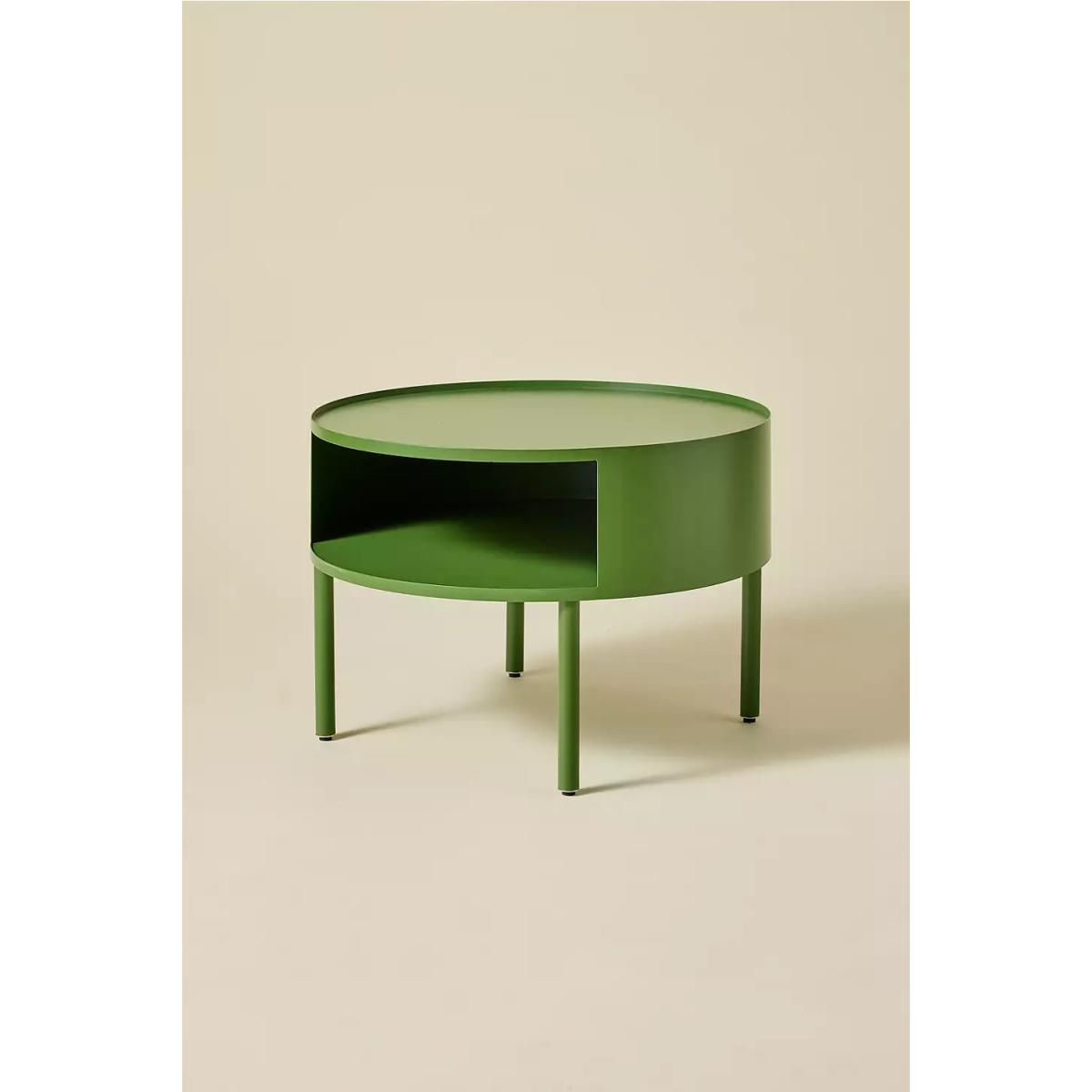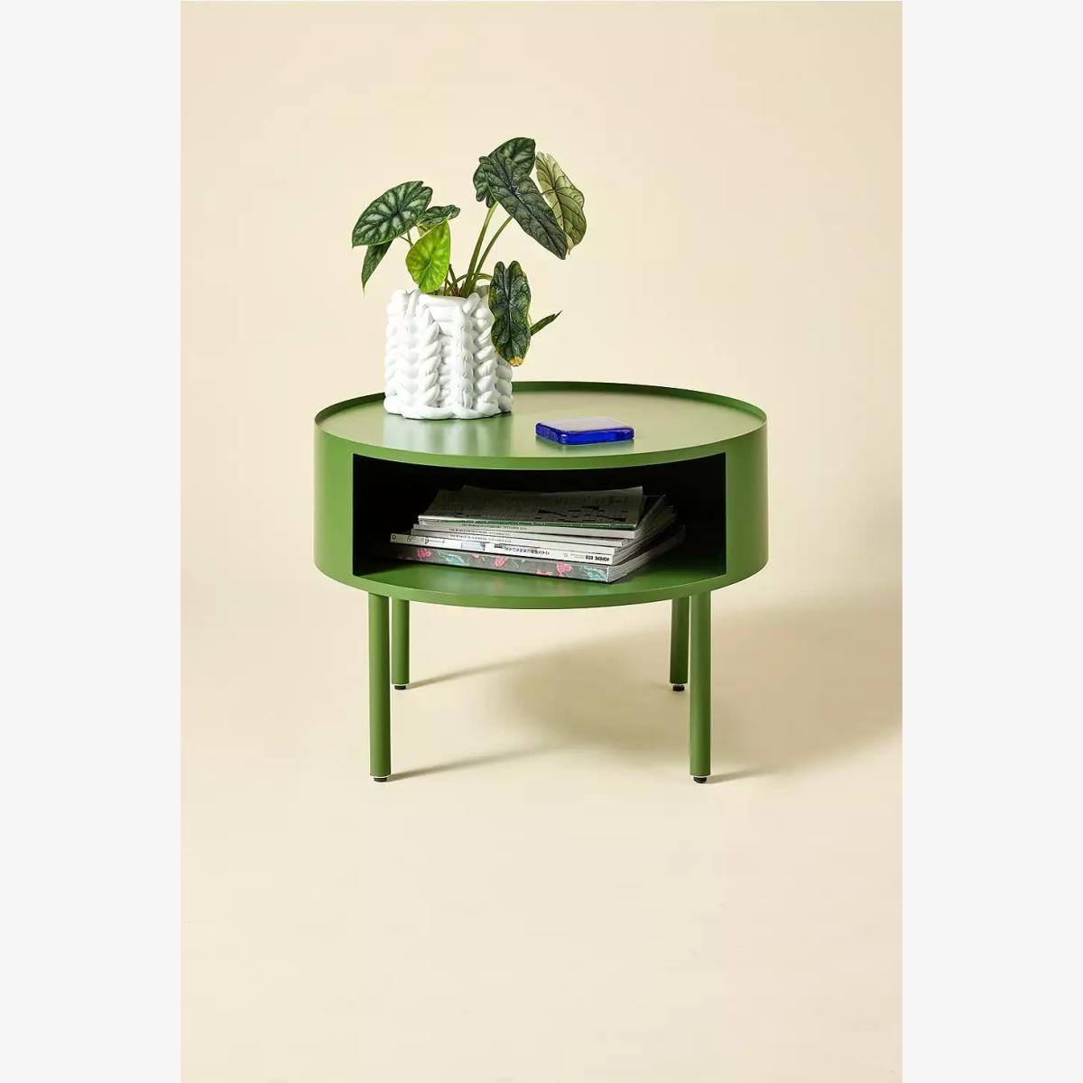 Refresh your living space with this iron coffee table complete with colorful finishes that lend a playful pop to your space. This round storage coffee table features a built-in open-face cubby to store your remotes, display your books and more. Available exclusively at Urban Outfitters. *Online return only. This item cannot be returned instore. Please note furniture items currently cannot be shipped to Northern Ireland or The Republic of Ireland. Delivery of large furniture items may take 1-2 weeks and are therefore not eligible for Next Day Delivery.* **Content + Care** \- Assembly required \- Iron \- Wipe clean \- Imported **Size** \- Dimensions: 59.1cm x 40.64cm \- Shipping package dimensions: D: 67.3cm W: 25.4cm H: 67.3cm