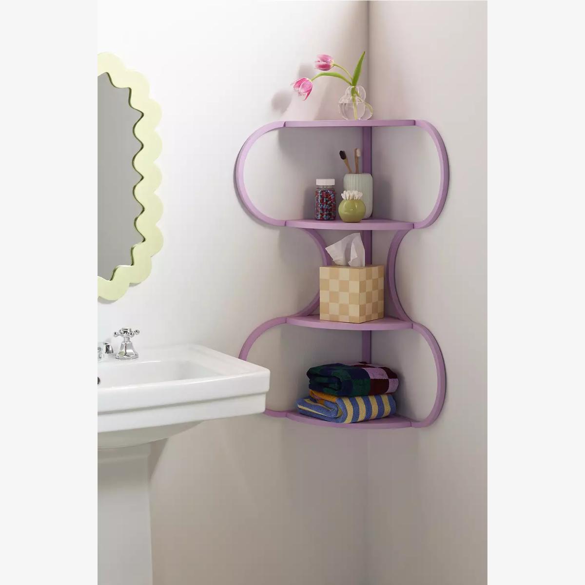 Create an artful display with this contemporary corner shelf. Crafted from colourful iron, it features a three tiers with squiggled framing. Available exclusively at Urban Outfitters. *Online return only. This item cannot be returned instore. Please note furniture items currently cannot be shipped to Northern Ireland or The Republic of Ireland. Delivery of large furniture items may take 1-2 weeks and are therefore not eligible for Next Day Delivery.* **Content + Care** \- 100% Iron \- Wipe clean **Size** \- Product Dimensions: D: 44.7cm x W: 44.78cm x H: 82.55cm \- Package Dimensions: D: 51.7cm x W: 9.5cm x H: 89.5cm