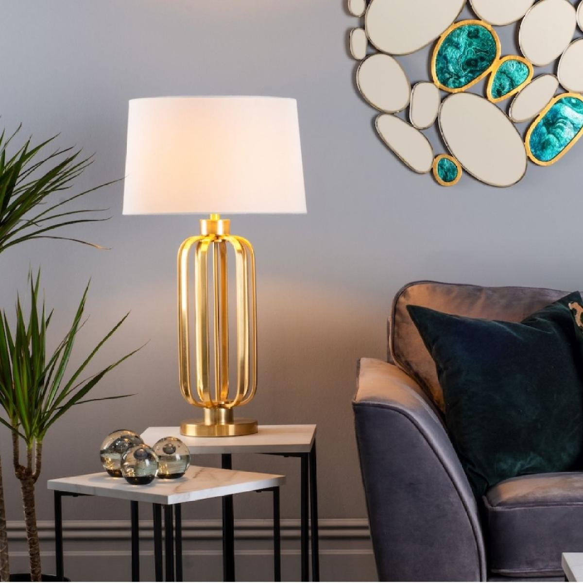 Lucie Satin Brass Table Lamp with White Shade