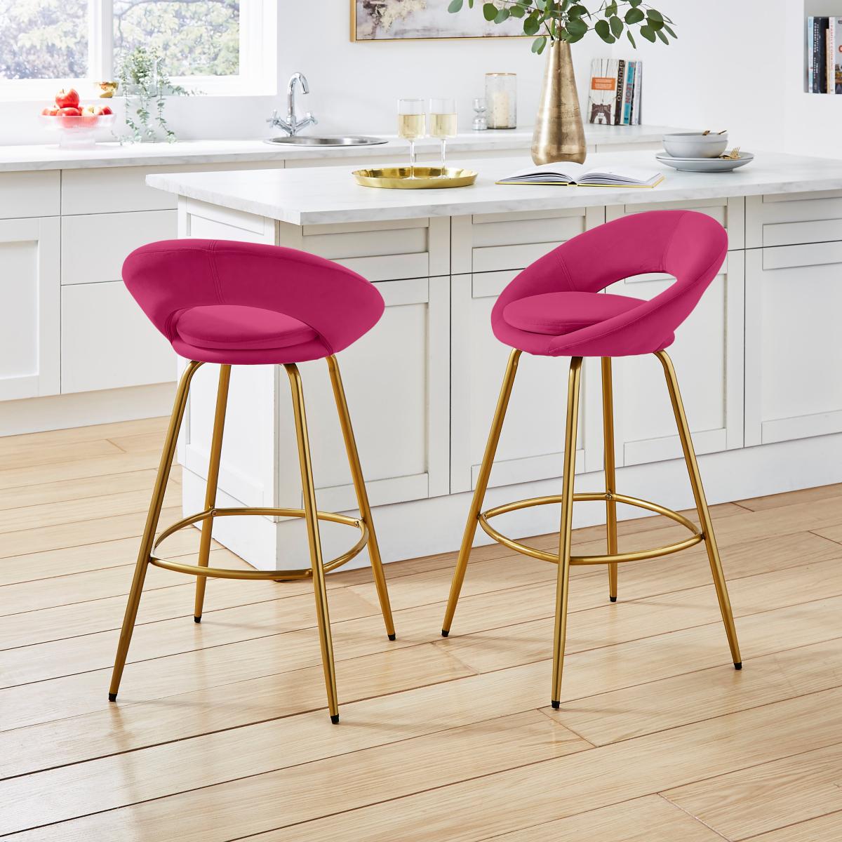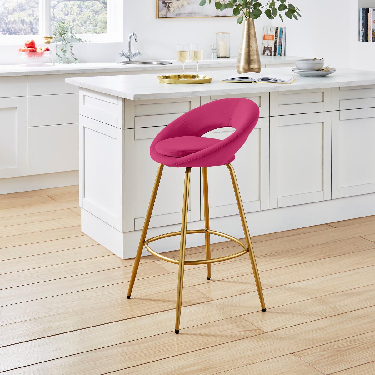 I love this magenta bar stool for its bold colour and sleek, modern design. It adds a vibrant pop of colour to neutral or minimal kitchens, creating a lively focal point. Ideal for contemporary or eclectic interiors, it pairs beautifully with metallic accents or natural woods. Practical styling tips include mixing it with softer textures like wool or faux fur cushions for comfort or layering with other colourful accessories to create a cohesive look. Its height makes it versatile, perfect for breakfast bars or high worktops, and its vibrant hue is great for brightening up communal spaces or adding a playful touch to more sophisticated schemes.
