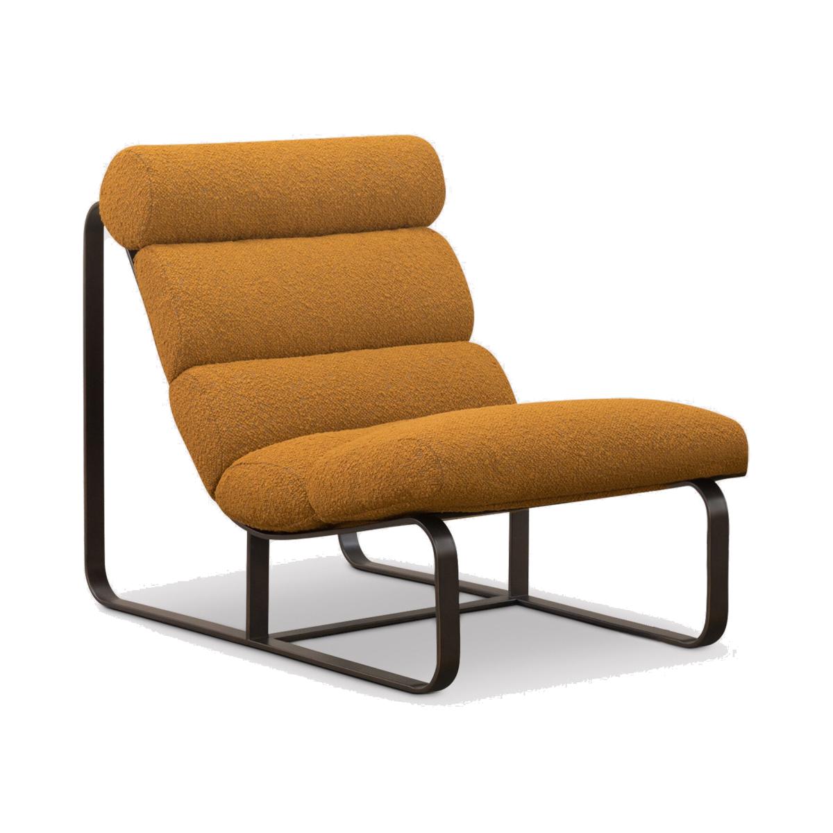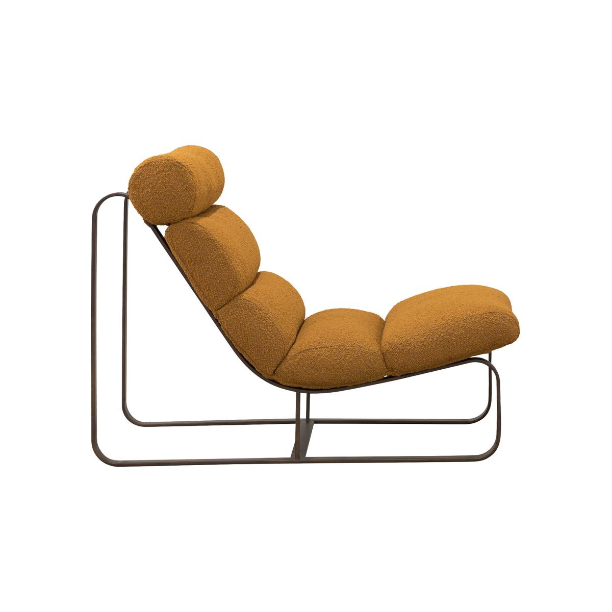 The Lucien Mustard Yellow Boucle Fabric Accent Chair offers a stylish blend of comfort and elegance. Its boucle fabric adds a soft, textured feel, while the webbed suspension ensures lasting support. The feather and foam-filled cushioning provides ultimate relaxation. Metal legs with a sleek black powder coating add modern flair, complementing the vibrant mustard yellow. Pair it with the Lucien Footstool for a cohesive, luxurious seating experience perfect for any room.