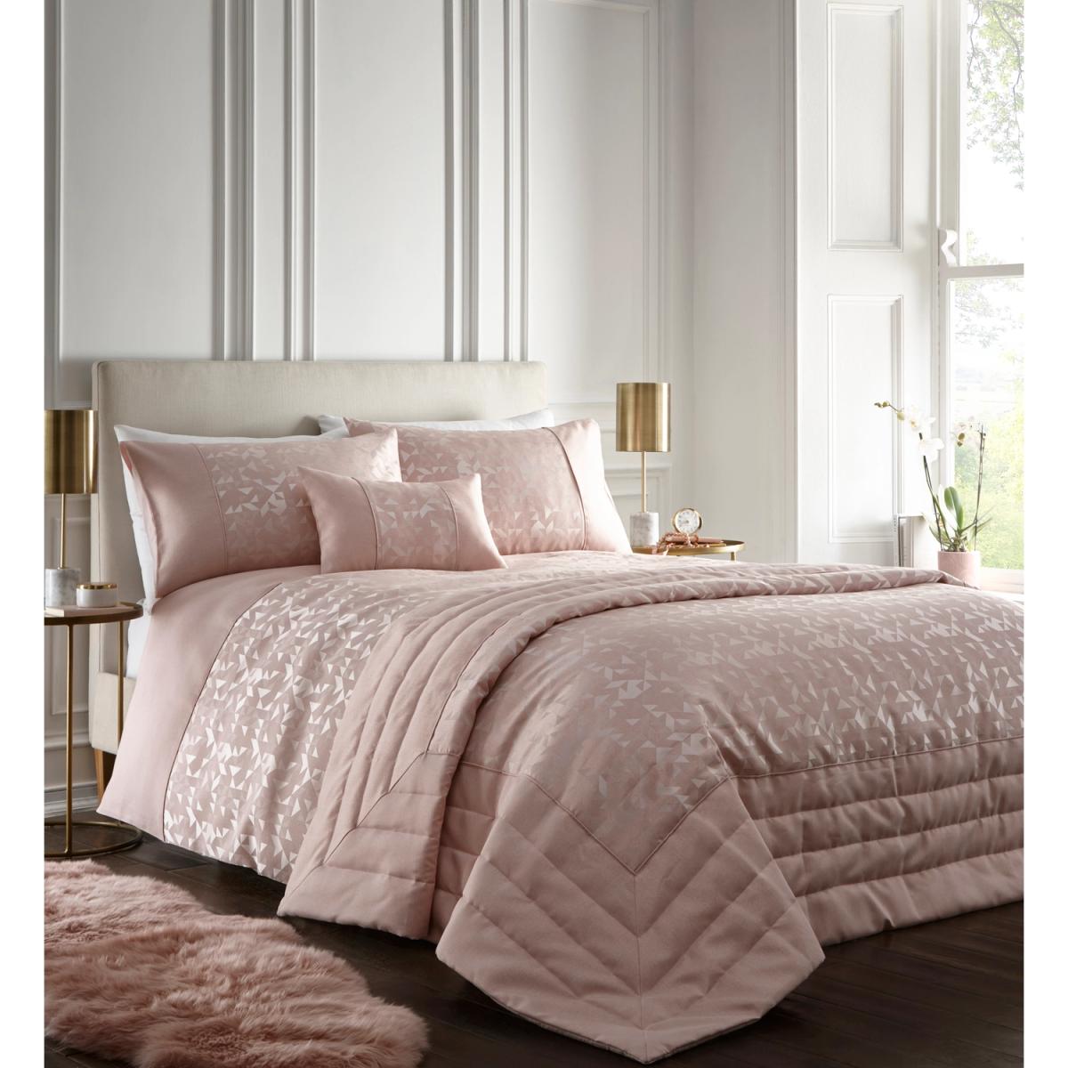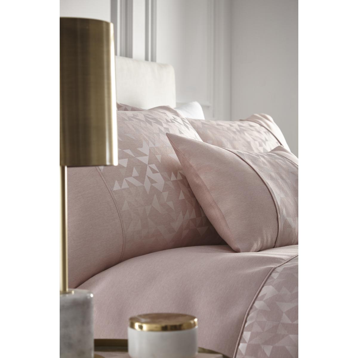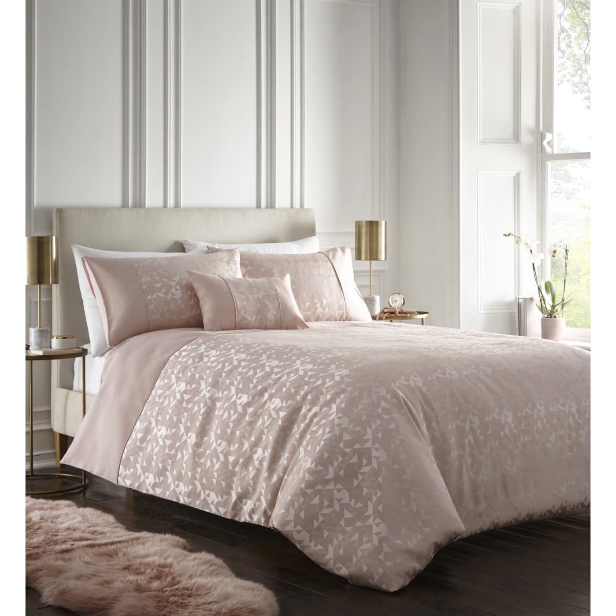 Deco inspired geometric jacquard duvet cover that can be layered up with a co-coordinating boudoir and quilted throw for the full luxurious effect. It creates a modern look with the subtle metallic tonal threads available in 3 shades of deep blue, blush pink and silver grey.