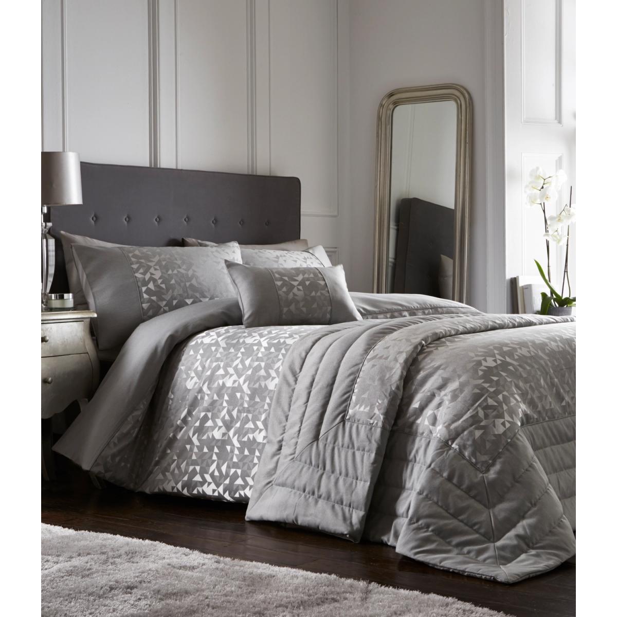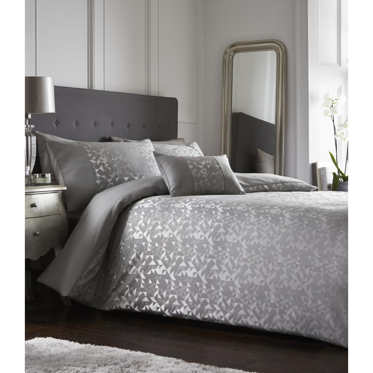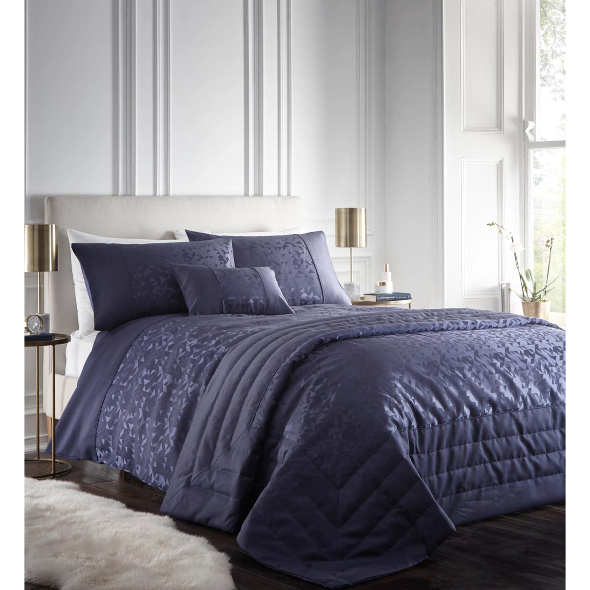 Deco inspired geometric jacquard duvet cover that can be layered up with a co-coordinating boudoir and quilted throw for the full luxurious effect. It creates a modern look with the subtle metallic tonal threads available in 3 shades of deep blue, blush pink and silver grey.