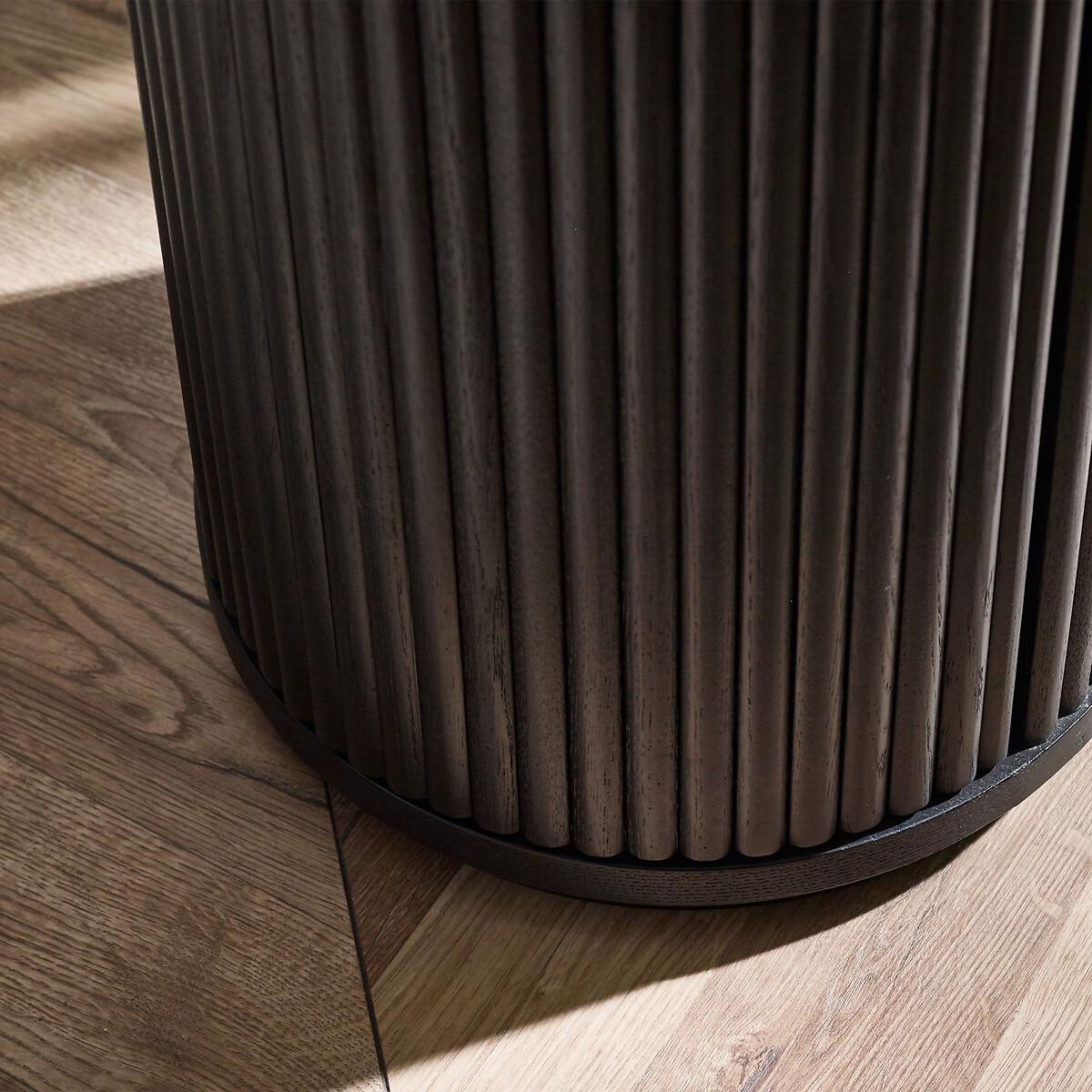 Graced with intricate fluted details, this side table is sure to take centre stage as a luxurious focal point in the living room. The sleek matte finish accentuates its textured beading, while the push-touch door reveals a concealed shelving nook, perfect for use as a secret drinks cabinet or simply for hiding living room clutter. Product details • Round side table with storage compartment • Hidden push-touch door • Fluted finish • Ash wood, Ash veneer & MDF construction • Matte finish • Full assembly required • Fixings supplied • 12 Months manufacturers warranty • Care advice: wipe clean with a soft cloth. Product Composition - 99% Wood, 1% Metal. Product Dimensions - 33 cm x33 cm x45.5 cm , Weight - 9.5 KGPackage Dimensions - 52 cm x 40 cm x 40 cm, Weight 11.1 kg. This product will be dispatched by one of our trusted suppliers. You’ll be contacted by their selected courier about your delivery. Please note: this product cannot be delivered to all Offshore Islands, Northern Ireland or Republic of Ireland.