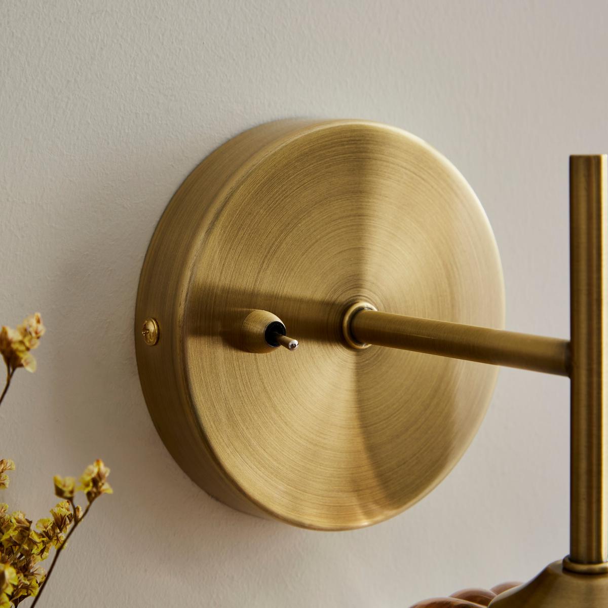 I love this wall light because it offers a stylish, vintage-inspired touch with its beautifully moulded glass shade and metallic finish. It works well in various interiors, from traditional to retro-modern schemes, adding both ambient and focused lighting. For practical styling, consider placing it in bedrooms as bedside lighting or in living rooms to highlight feature walls or artwork. To enhance its impact, pair it with matching accessories in brass or gold tones and keep surrounding decor understated to let the light fixture be a focal point. When installing, ensure it’s positioned at a height that allows the shade to cast an inviting glow without glare.
