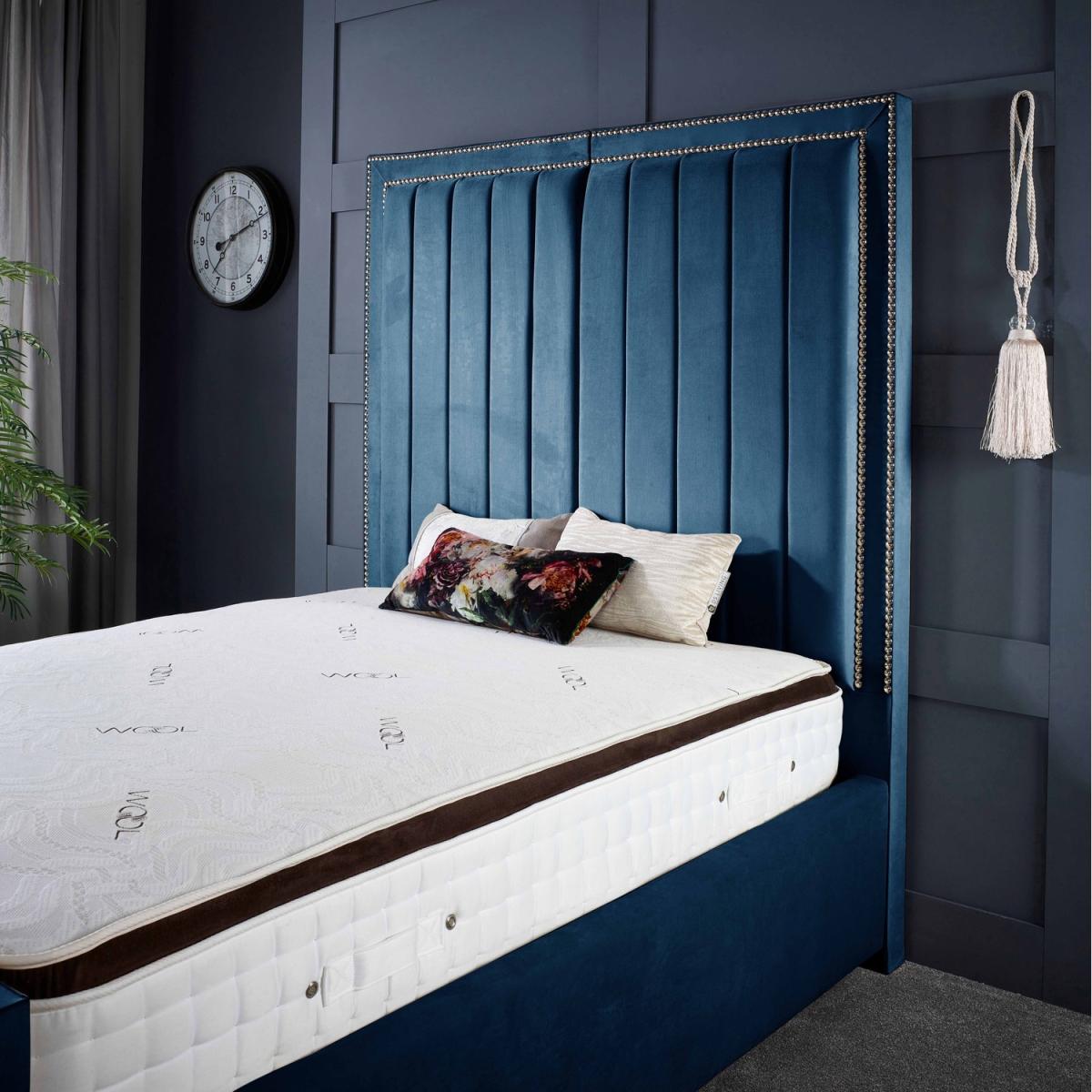 Introducing our uniquely designed upholstered bed - Lucinda. The Lucinda is crafted with the utmost care and attention to detail right here in the UK. This luxurious bed exudes sophistication and elegance, making it the perfect centerpiece for any bedroom.