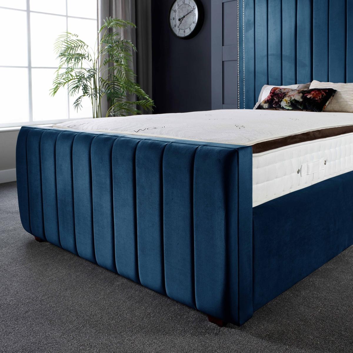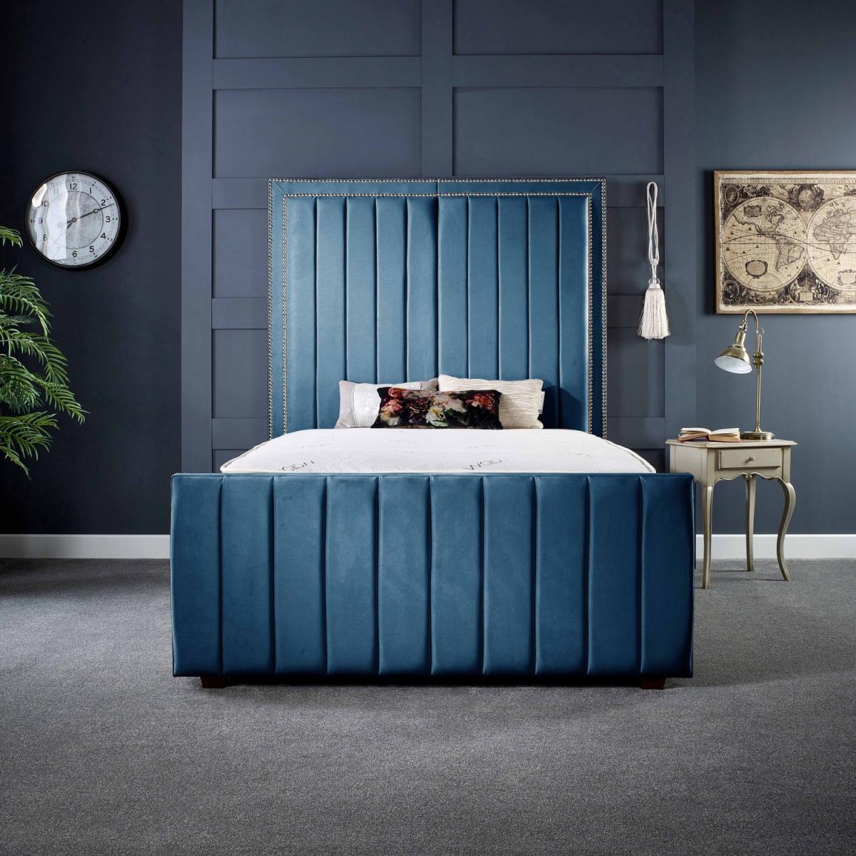 Lucinda Panel Luxury Velvet Upholstered Bed Frame - Blue / Small Double / 119.7kg / 130cm