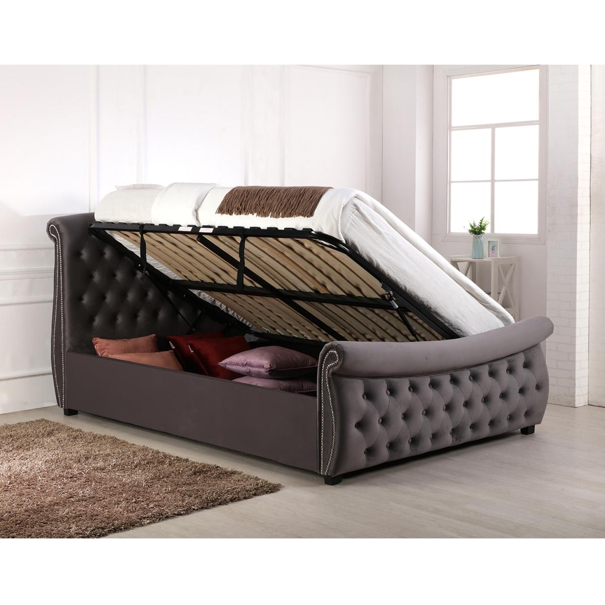 From the beautiful scroll headboard and footboard, down to the simply designed feet, the Lucinda makes a impressive focal point to any bedroom. The Lucinda has been designed to include a scroll style headboard and a curved scrolled foot end, which both feature elegant chesterfield button detailing, along with studded detail on the sides. Incorporated into the Lucinda is a useful side lift ottoman, giving you plenty of storage space for extra quilts, blankets and pillows. The side lift ottoman can be assembled to open on either the left or right hand side to suit your preference. Powerful hydraulic pistons attach to the solid sturdy metal frame that encases the slats ensuring easy and effortless lifting.