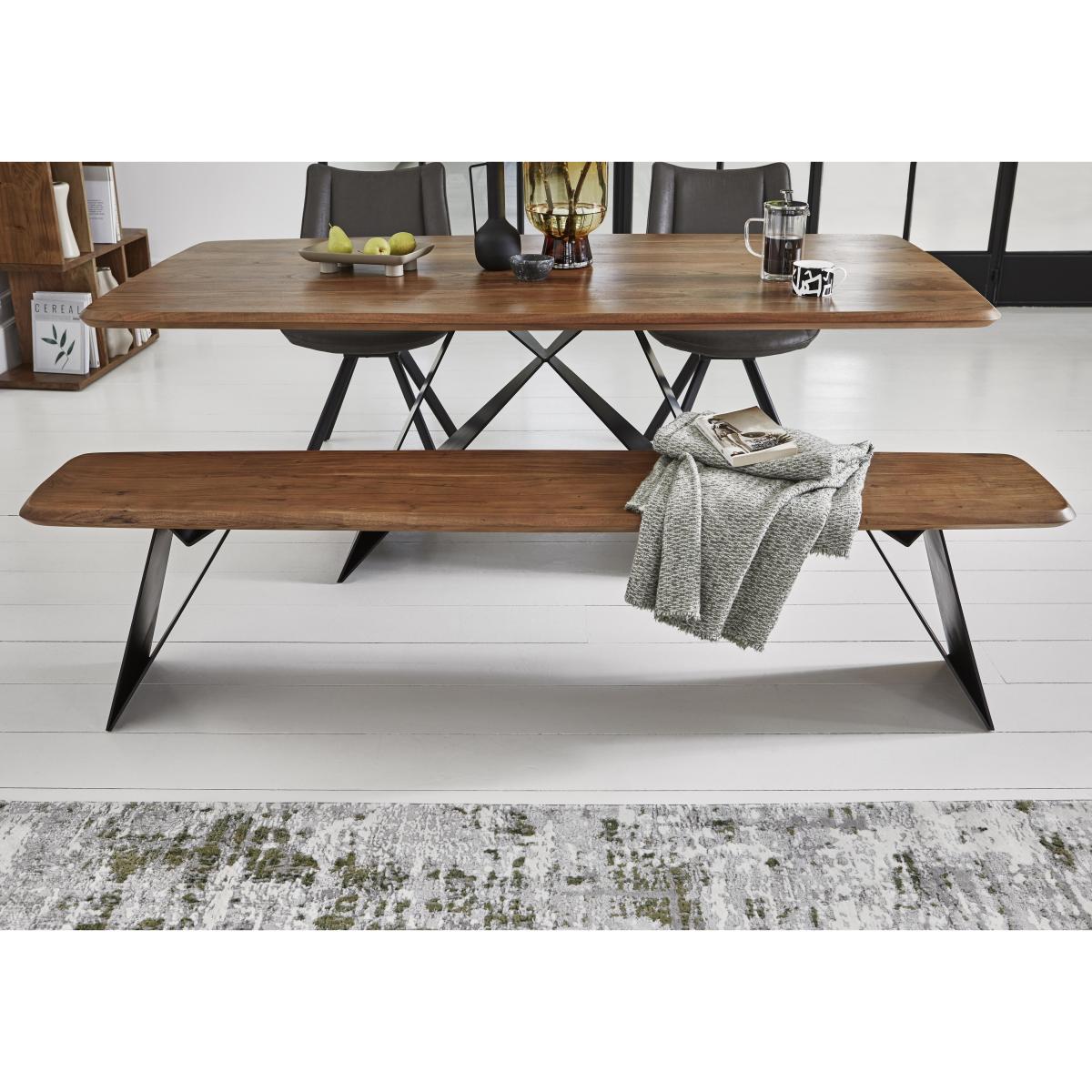 Made from solid acacia wood, lightly lacquered to bring out its true beauty, the rather edgy and very stylish Lucio range offers a new twist on authentic industrial style, thanks to its signature standout element – that black iron base. All bold angles and flat wide edges, it’s featured on every piece of furniture in the collection from the dining table to the sideboard to the lamp table. And it’s the perfect contrast to the rounded corners and gently angled profiles of the collection’s table tops. Beautifully handcrafted, the Lucio collection has an industrial design aesthetic that really makes a statement. This striking solid acacia wood and iron dining bench is a perfect example of modern industrial style – and everyday practicality. It comes in two useful sizes. Why you'll love it Striking dining bench combines practicality with statement style. Authentic industrial style with a one-of-a-kind look. Bold, angular black iron base. Solid wood with rounded corners and gently sloping edges. Lightly stained and lacquered finish enhances the woodgrain. In 2 sizes. Handcrafted. This dining bench is part of the Lucio range. What you need to know Acacia wood top. Powder-coated iron base. 150 cm dining bench seats 2 adults or 3 children. 200 cm dining bench seats 3 adults or 4 children. Metal base may show marks on impact. Natural timber will show variation in colour. Knots, filled knots and other markings are to be expected. Avoid placing in direct sunlight or close to a heat source.