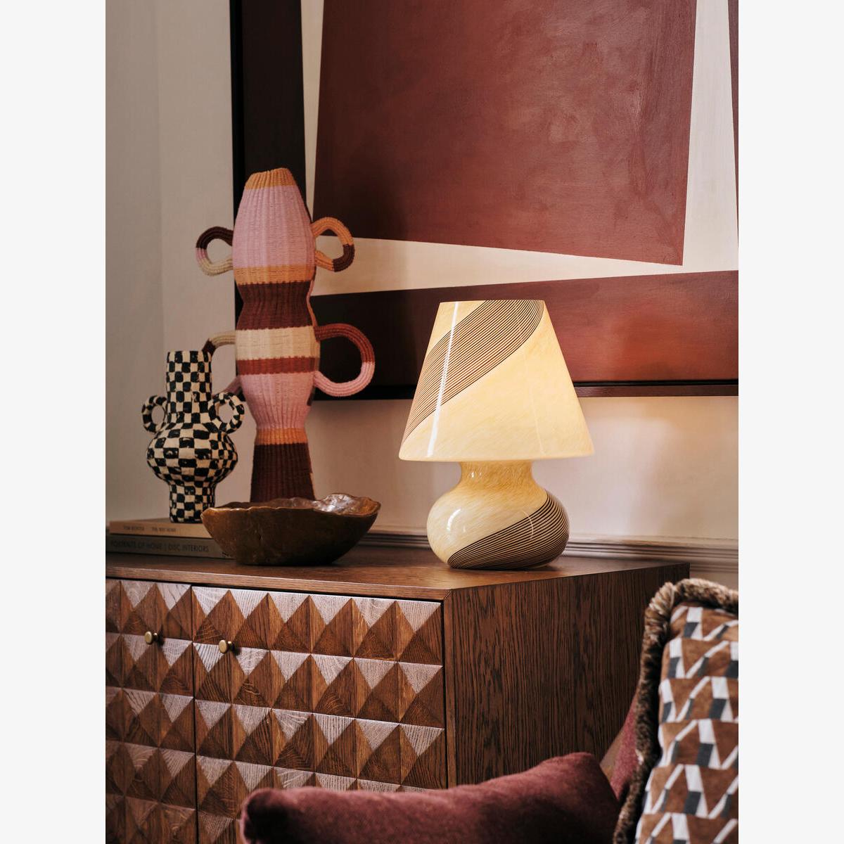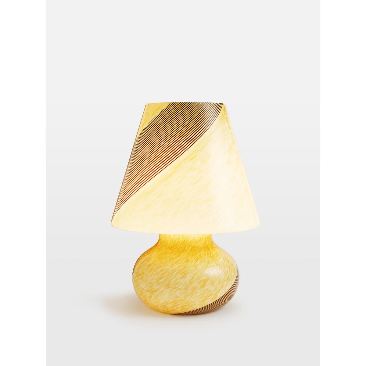 Inspired by Soho House Rome, the Lucio murano lamp references the 16th century styles that originated from the island of Murano. Created by Italian artisans, each lamp has been mouth-blown with intricate filigrana stripe detail - a truly one-of-a-kind piece. Murano table lamp Mouth-blown by local Italian artisans Intricate filigrana stripe detail Each piece is one of a kind Dimmable Inspired by Soho House Rome