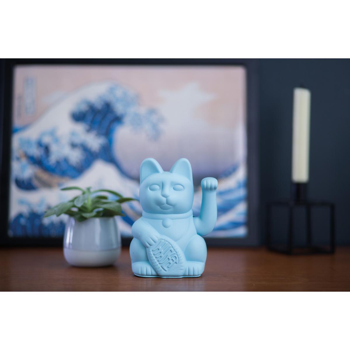 Kawaii Trend. For a fun and trendy décor, we love this refined and designer version of the famous lucky charm cat, Maneki Neko. This Japanese figurine is a symbol of luck and prosperity. The Maneki Neko cat lucky charm waves its left paw as a sign of welcome. Made from plastic and available in trendy colours, this refined figurine with a modern look gives a quirky feel to your décor.