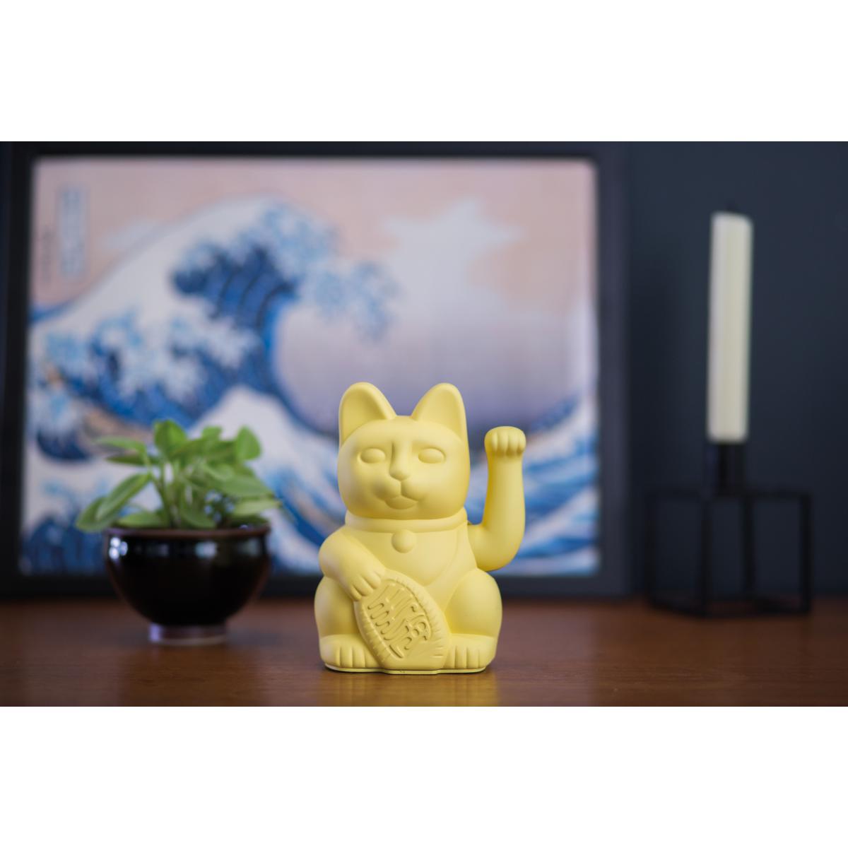 Kawaii Trend. For a fun and trendy décor, we love this refined and designer version of the famous lucky charm cat, Maneki Neko. This Japanese figurine is a symbol of luck and prosperity. The Maneki Neko cat lucky charm waves its left paw as a sign of welcome. Made from plastic and available in trendy colours, this refined figurine with a modern look gives a quirky feel to your décor.