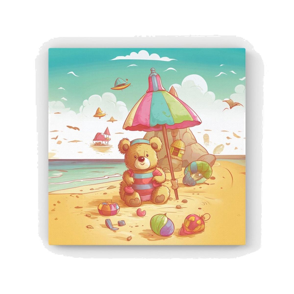 Lucky Teddy Bear On A Beach Holiday Canvas Print - Yellow / 25.4cm