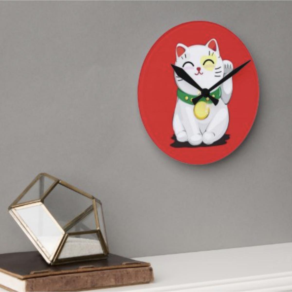 Lucky Waving Cat Wall Clock - Red