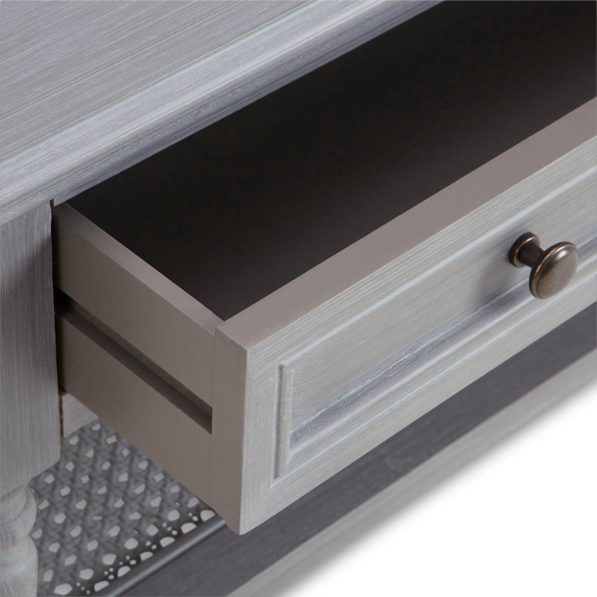Dunelm Exclusive – Designed and Developed by Dunelm. Inspired by vintage French styling, the Lucy Cane range is elegantly crafted to provide a perfect statement piece for any living space. Finished in an aged painted colourway with natural lacquered coating, this stunning range features a woven cane design and turned legs. Featuring a slate grey colourway with solid fir legs, this part-assembly coffee table is elegantly crafted with one ample-size drawers, with round handles and a low bottom shelf for additional storage space. Care Instruction: Avoid prolonged exposure to direct sunlight. Clean regularly with a soft cloth and wipe up spills immediately with a damp cloth, avoid common hazards such as harsh solvents or abrasives. Maintain brass and metal with regular dusting and clean with mild soapy water, dry thoroughly. Do not use a brass cleaner as this will damage the lacquer. This Range is also available in. Cream.