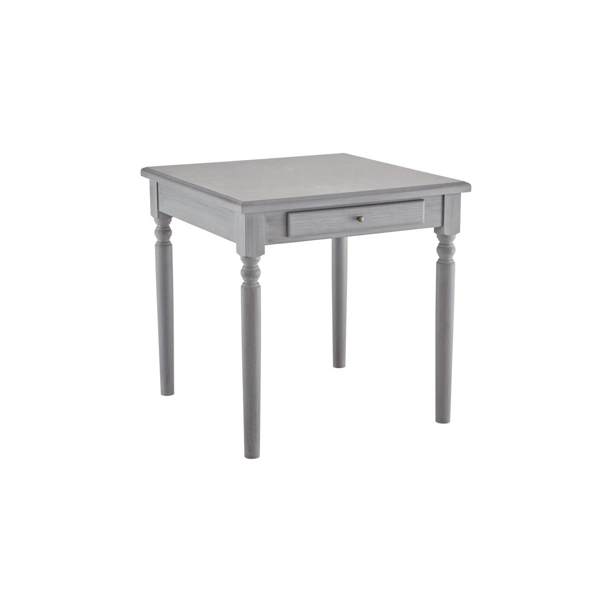 Dunelm Exclusive - Designed and Developed by Dunelm. Inspired by vintage French styling, the Lucy range is elegantly crafted to provide a perfect statement piece for any living space. Finished in a painted grey colourway with natural lacquered coating and complimenting handles, this stunning range features a woven cane design and a beautiful antique finish. A lovely feature to add to your home with this dining table. Featuring an interesting square shape with an integral small drawer for additional storage, this dining table is crafted with rubberwood legs.