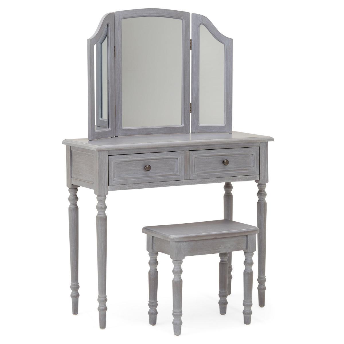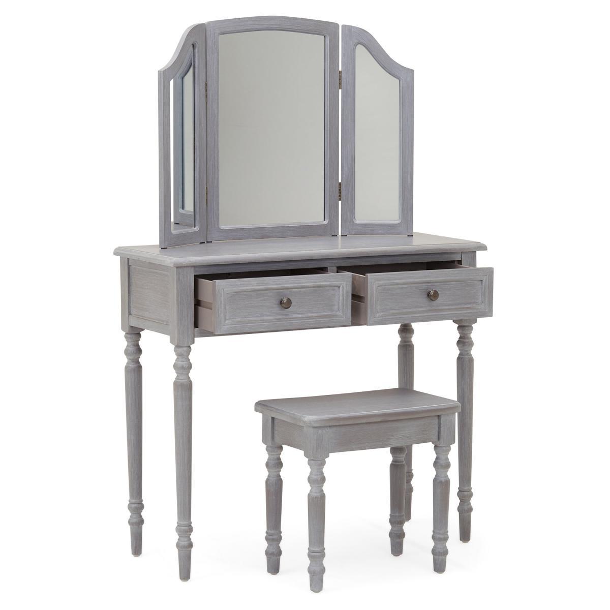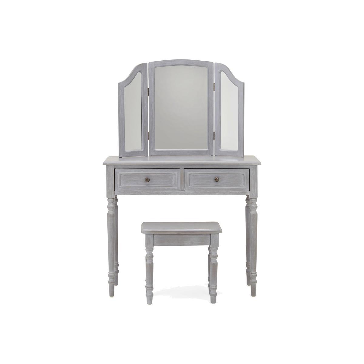 Dunelm Exclusive – Designed and Developed by Dunelm. Inspired by vintage French styling, the Lucy Cane range is elegantly crafted to provide a perfect statement piece for any living space. Finished in an aged painted colourway with natural lacquered coating, this stunning range features a woven cane design and turned legs. Designed in a slate grey colourway with solid fir legs, this part-assembly dressing table set features two ample-size drawers with round handles and is supplied with a matching stool and three-part vanity mirror. Care Instruction: Avoid prolonged exposure to direct sunlight. Clean regularly with a soft cloth and wipe up spills immediately with a damp cloth, avoid common hazards such as harsh solvents or abrasives. Maintain brass and metal with regular dusting and clean with mild soapy water, dry thoroughly. Do not use a brass cleaner as this will damage the lacquer. This Range is also available in. Cream.