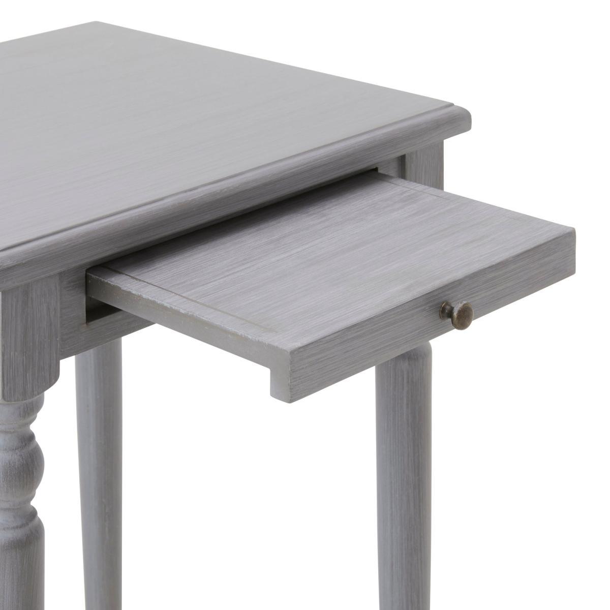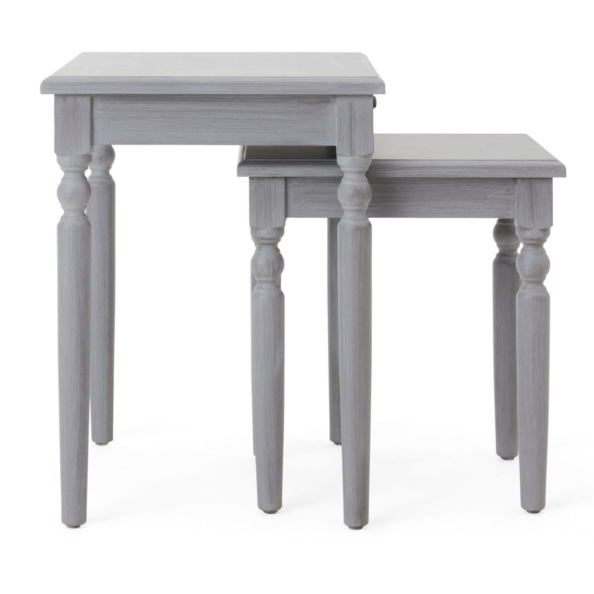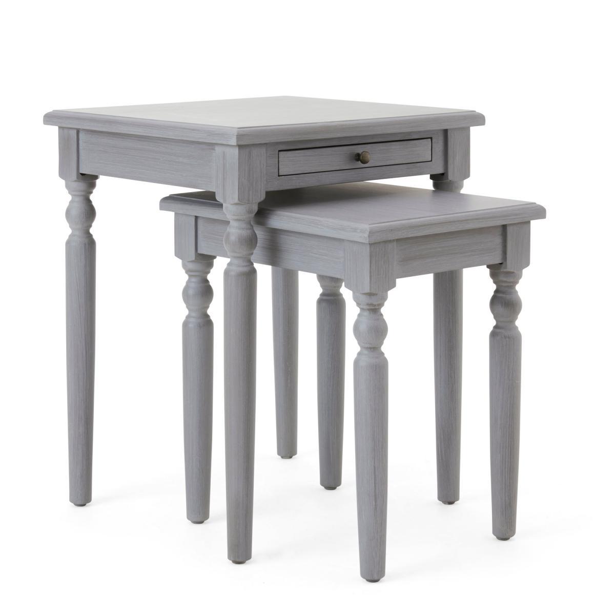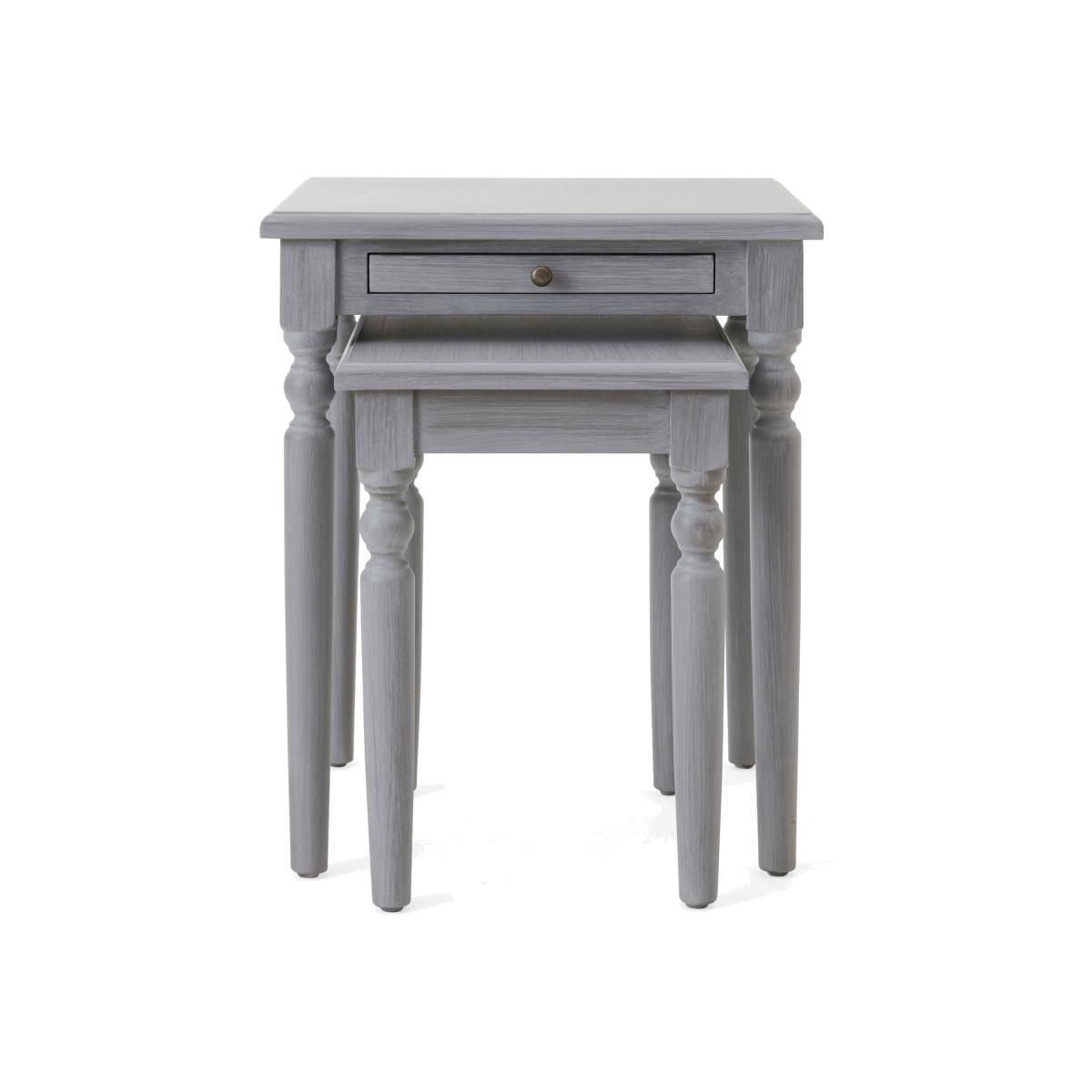 Dunelm Exclusive - Designed and Developed by Dunelm. Inspired by vintage French styling, the Lucy range is elegantly crafted to provide a perfect statement piece for any living space. Finished in a painted grey colourway with natural lacquered coating and complimenting handles, this stunning range features a woven cane design and a beautiful antique finish. Crafted with a practicality and style in mind, this nest of two tables is the perfect addition to any living space. Designed with an integral pull out tray and turned legs, the set of two tables slot neatly together, ideal for bringing out and storing away again.