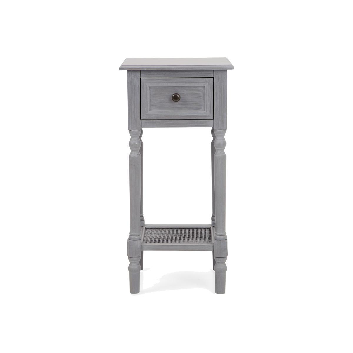 Dunelm Exclusive - Designed and Developed by Dunelm. Inspired by vintage French styling, the Lucy Cane range is elegantly crafted to provide a perfect statement piece for any living space. Finished in an aged painted colourway with natural lacquered coating, this stunning range features a woven cane design and turned legs. Featuring a slate grey colourway with an aged painted finish, this part-assembly telephone table is crafted from solid wood and offers one small drawer complete with a round handle and a low cane webbing shelf to boasts extra storage space. This Range is also available in. Cream.