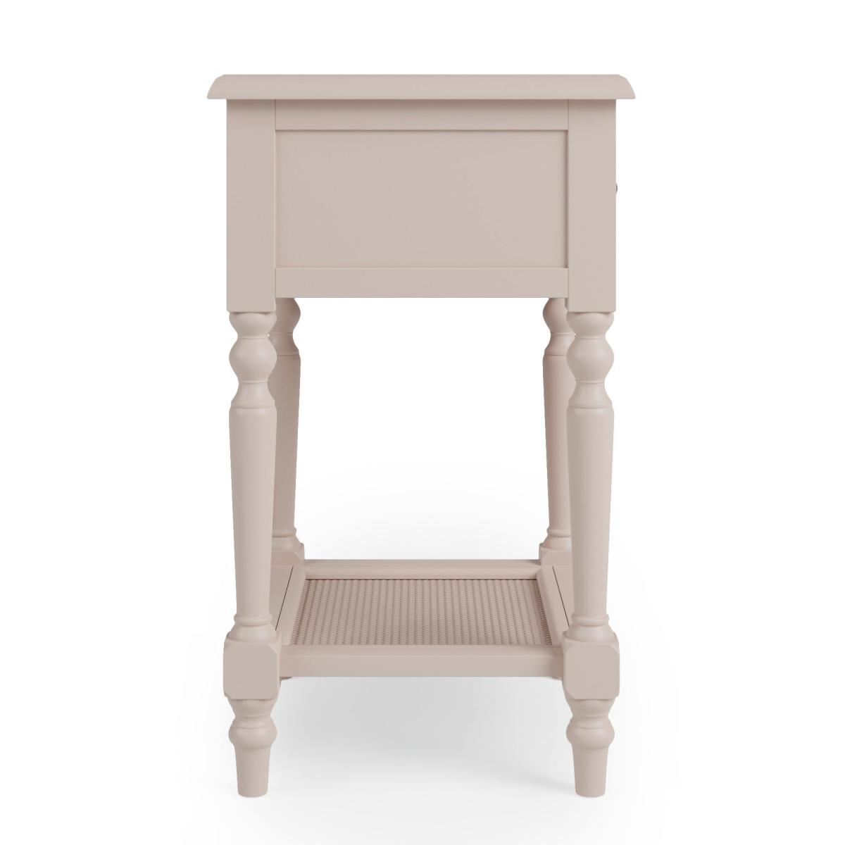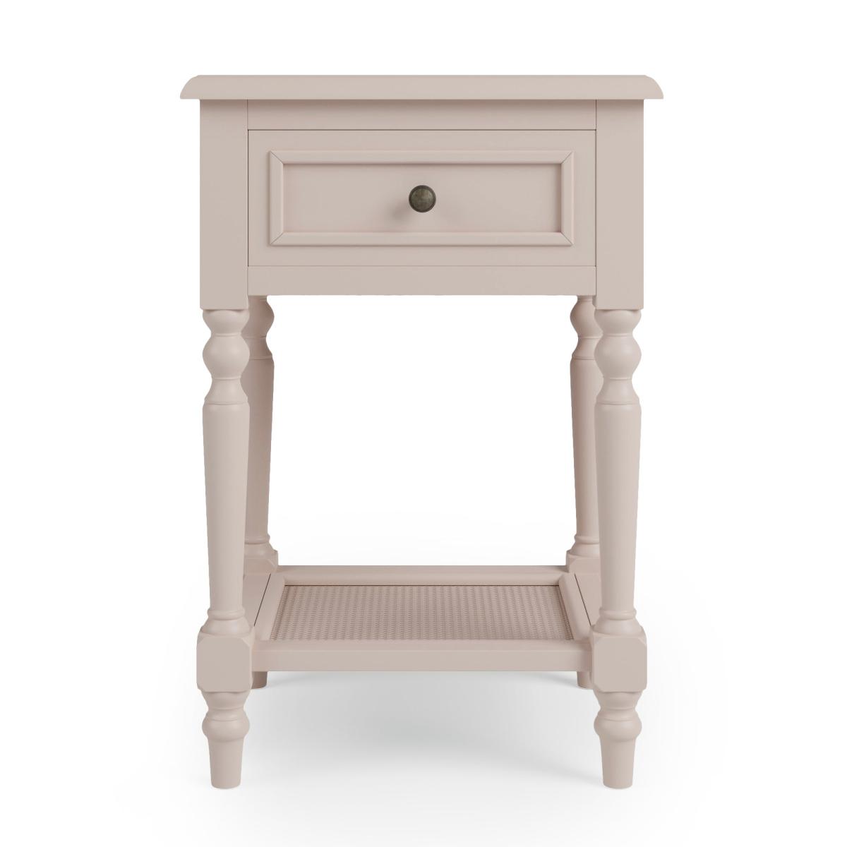 No matter your style, our Lucy nightstand will look great in any setting! The classic turned legs and aged finish paint are inspired by vintage French styles. The woven cane open shelf adds a boho feel and is perfect for displaying pretty trinkets or books. This compact nightstand has a single drawer, great for hiding away your less glamorous night-time essentials.
