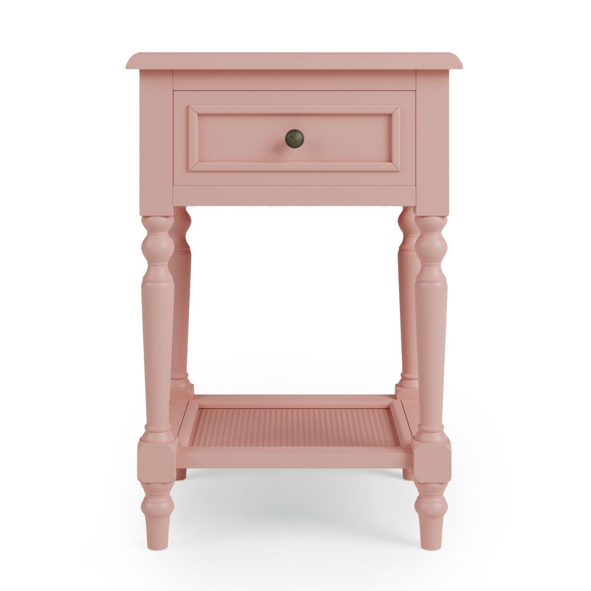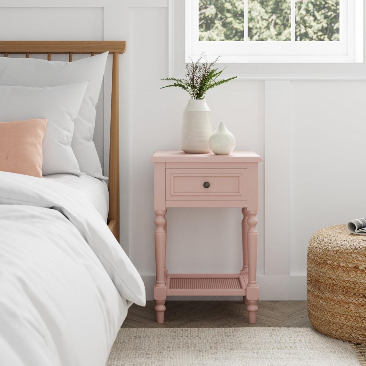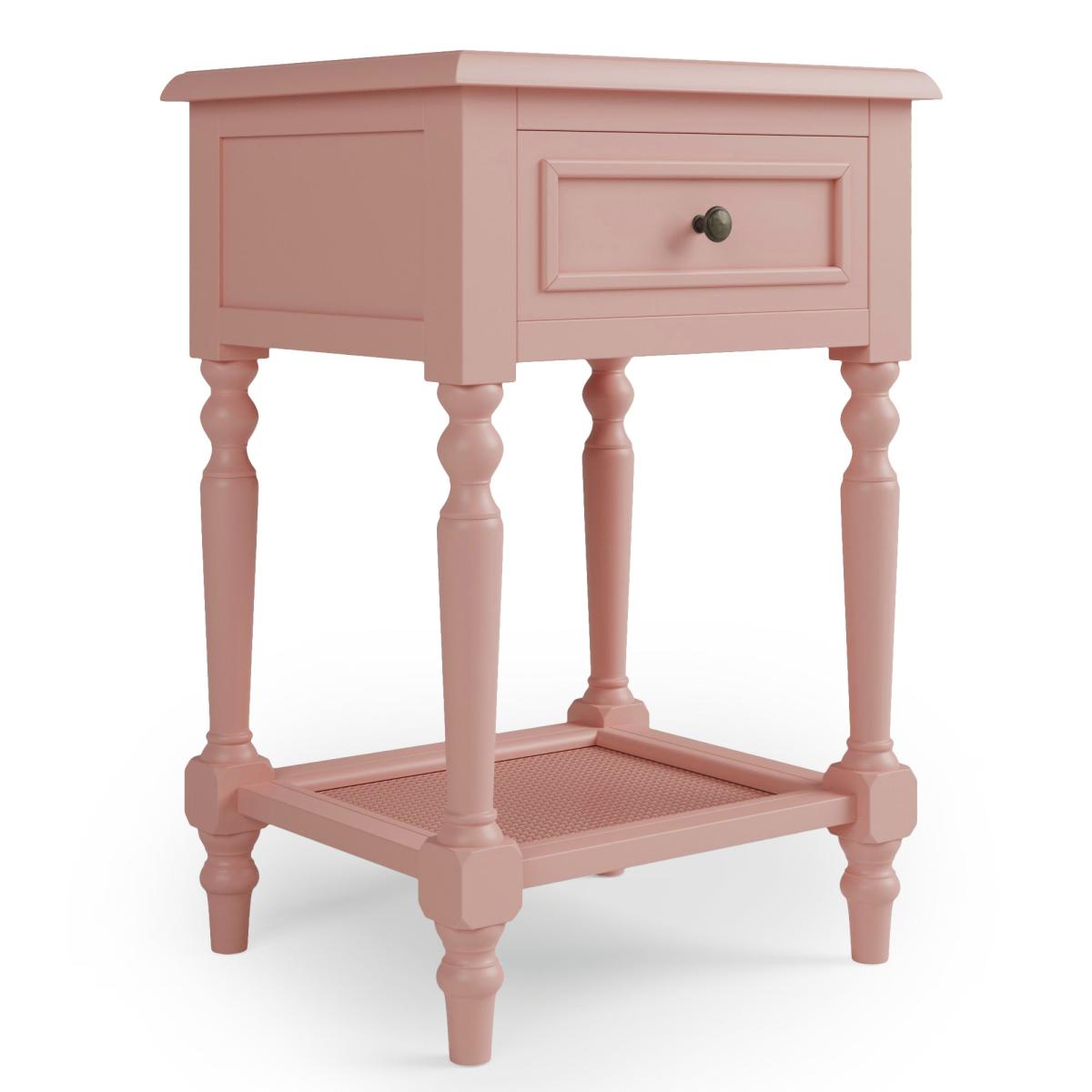 Mixing vintage French styles and trendy boho characteristics, our Lucy nightstand will look great in any home whatever your style! The woven cane open shelf adds a boho feel and is perfect for displaying pretty trinkets or books. This compact nightstand has a single drawer, great for hiding away your less glamorous night-time essentials.