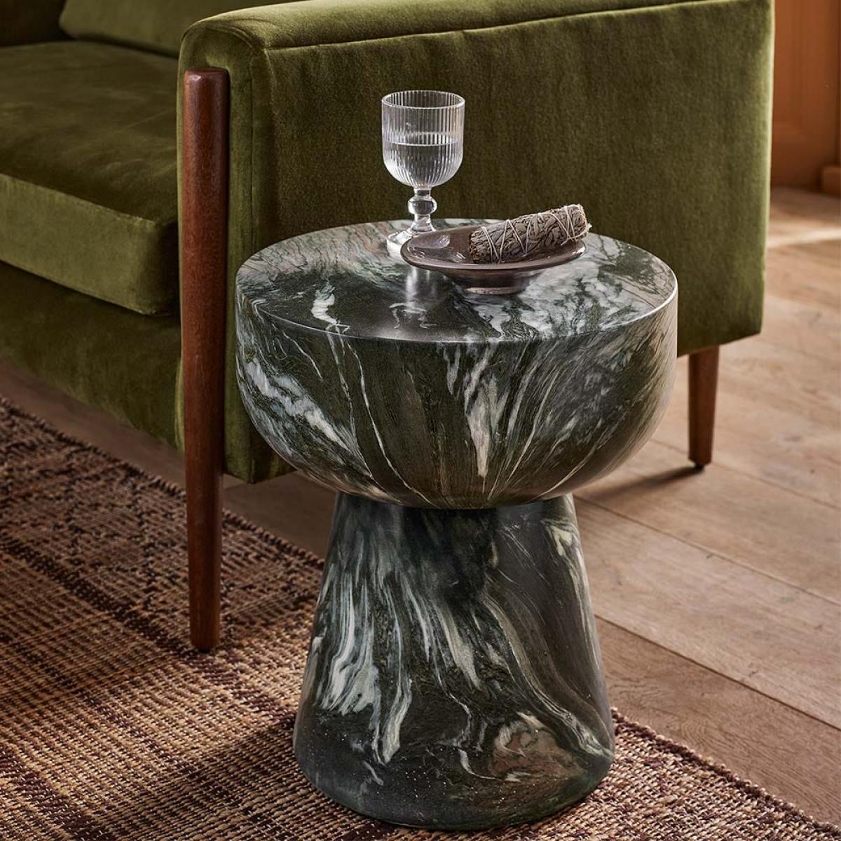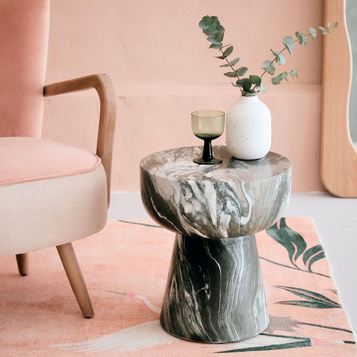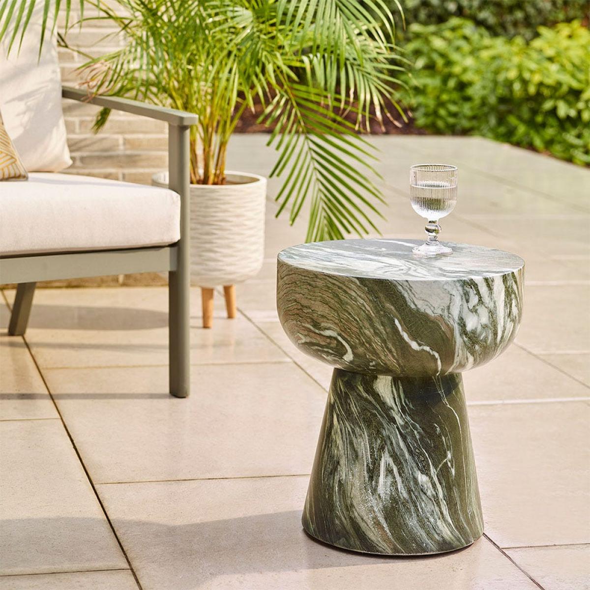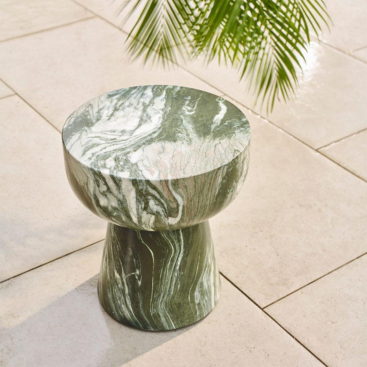 Tap into the trend for green décor with this marble outdoor side table. Compact in size and circular in shape with organic curves in all the right places, Lucy makes for a stylish accent on your patio and provides a practical surface for glasses or accessories. Its low profile means it doesn’t take up visual noise, either, while its surface features ample room for glasses or accessories. This statement coffee table innovatively produced using concrete with a marble-finish effect to create the illusion of a hand carved solid stone table for an elegant and solid design at an affordable price. To complete the look, pair with the gorgeous Lucy Coffee Table in the same collection – sure to make the neighbours green with envy.