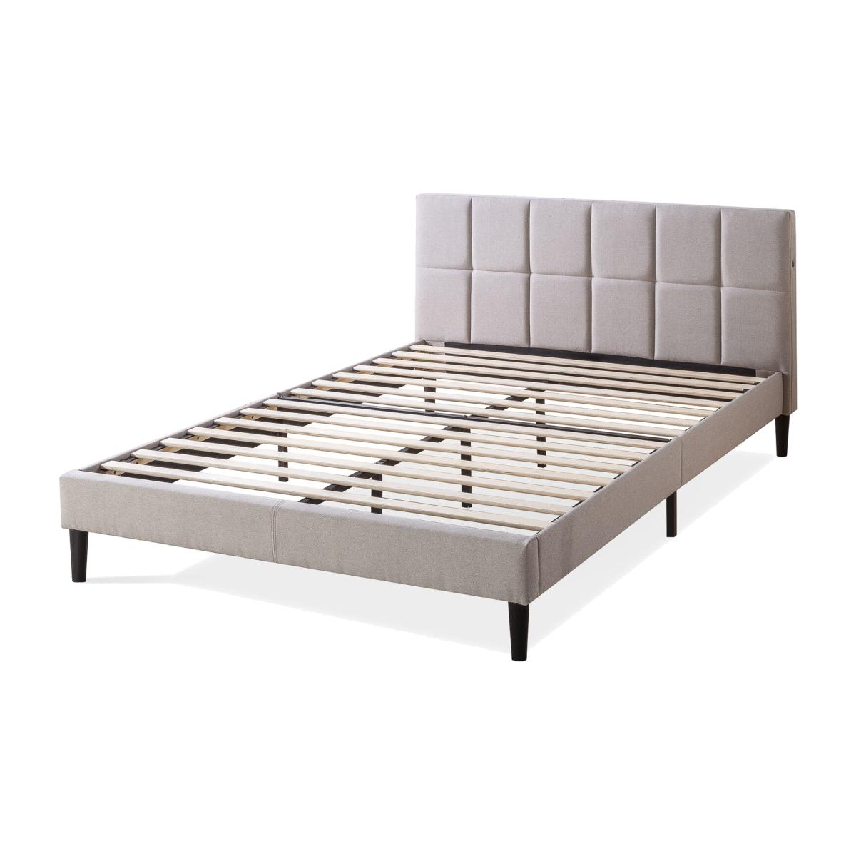 Smart USB Upholstered Bed Frame This bestselling Upholstered Bed Frame now comes with a high-tech upgrade and shorter, 35-inch headboard. It features a USB port on either side of the headboard, so youll always have a place to plug in while youre relaxing in bed. Its finished off with a stylish square stitched upholstered headboard that offers a refined, modern look for your bedroom. Whats more, its built with a steel frame and wood mattress platform designed to support any mattress. Extend the life of any spring, latex or memory foam mattress by resting it directly on top of this durable foundation, made even more dependable by additional center support legs. And to make delivery and setup as painless as possible, we pack this bed with everything you need to assemble it (plus a 5-year warranty) into one box that arrives at your doorstep. HIGH TECH, LOW PROFILE - At 35-inches tall, this upholstered bed frame fits beautifully beneath your low ceilings and windows and features two convenient USB ports on the headboard so your devices can stay charged and close byDURABL. Y DESIGNED - Interior steel framework and dense foam padding add comfort and longevity single size supports a maximum weight capacity of 159 kg, while all other sizes can support up to 318 kgNOIS. E FREE - Wooden slats designed to minimize noise when you sleep and designed to extend the life of your mattress EASY ASSEMBLY Everything you need is efficiently packed into one box and shipped straight to your door all parts, tools and instructions are located in the zippered compartment of the headboard for easy, two-person assembly in under an hourWORR Y - FREE - 5 year limited warranty included mattress sold separately