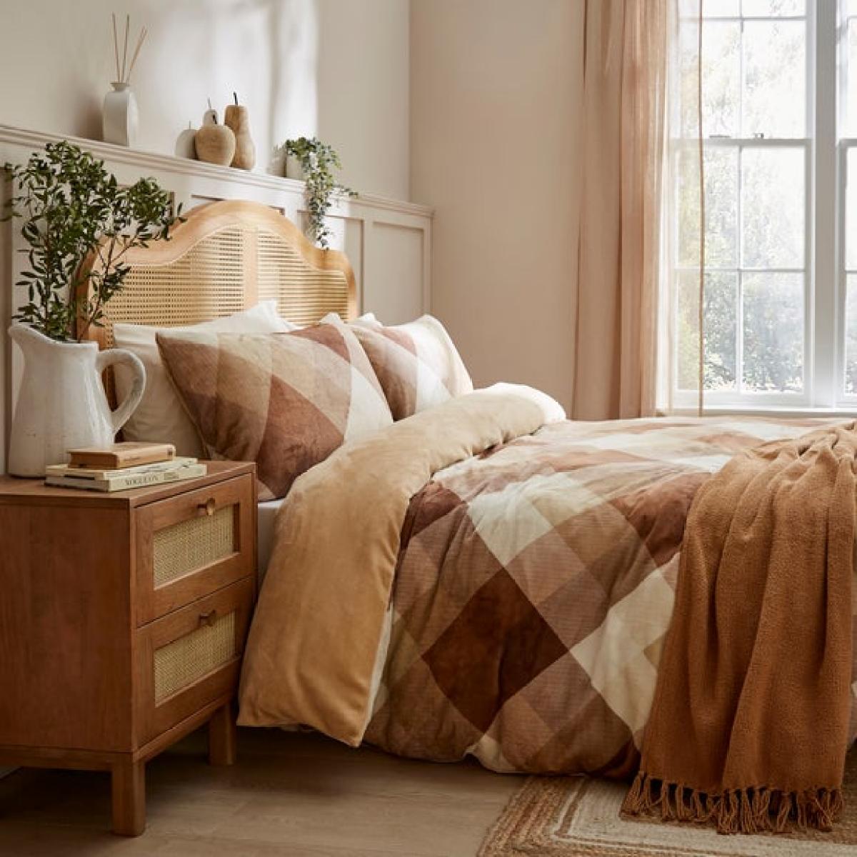 * Stylish checked design * Includes standard pillowcase(s) * Soft touch fleece fabric finish * Machine washable * Secure button closure * Made from 100% recycled polyester * Available in a range of colours Get a classic look with our Checked Duvet Set. The stylish checked design and soft fleece fabric finish will add a timeless and cosy feel to your bedroom. This set includes standard pillowcase(s) and a secure button closure. It's also machine washable, made from 100% recycled polyester, and available in a range of colours to suit your style.