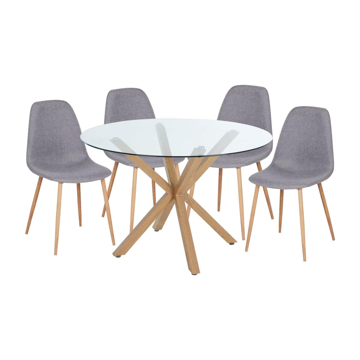 Enjoy leisurely lunches at the Ludlow. This stunning table would make a trendy addition to your home. Its chic cross-leg base offers stand-out style that will set your dining room apart. The round tabletop is made from toughened glass so it's perfect for busy family life. The strong metal frame is complete with a warming oak-effect finish.