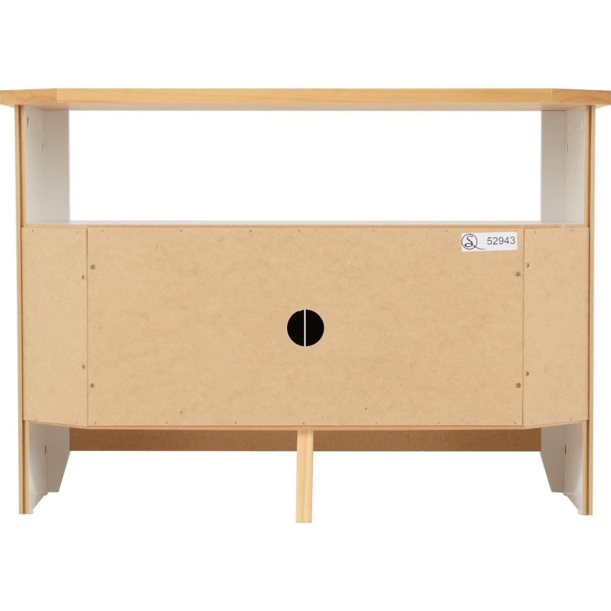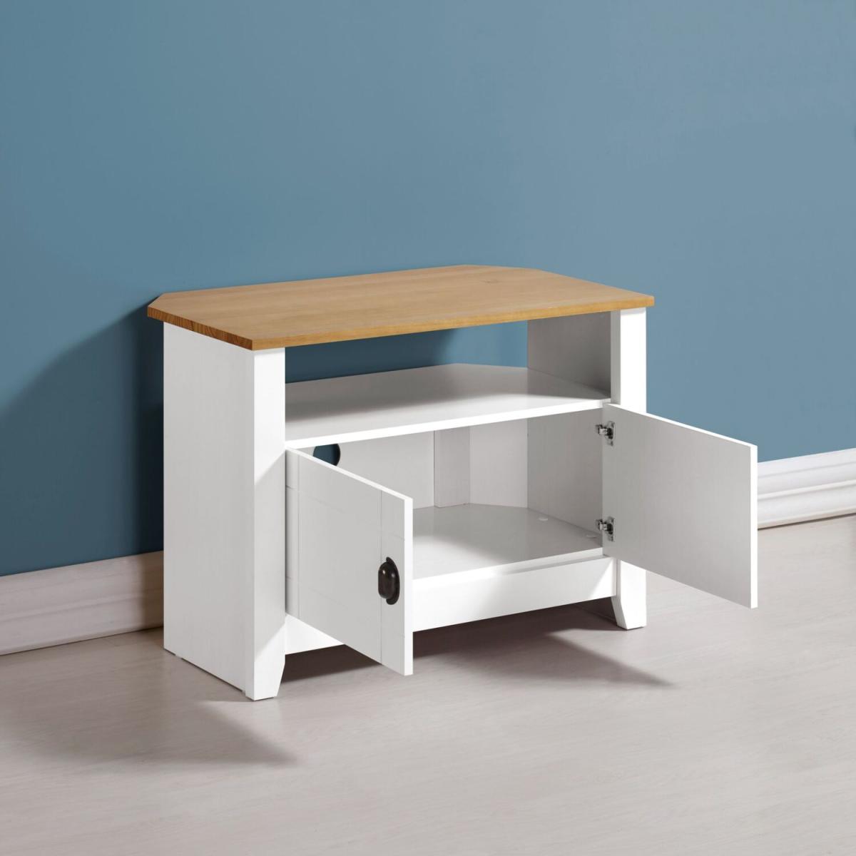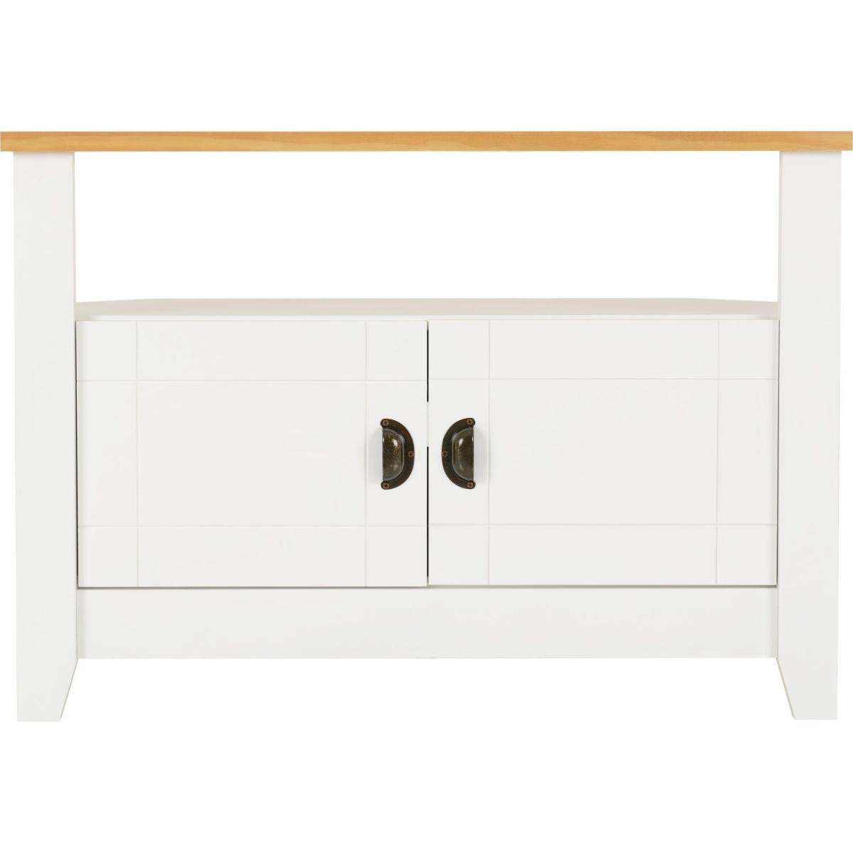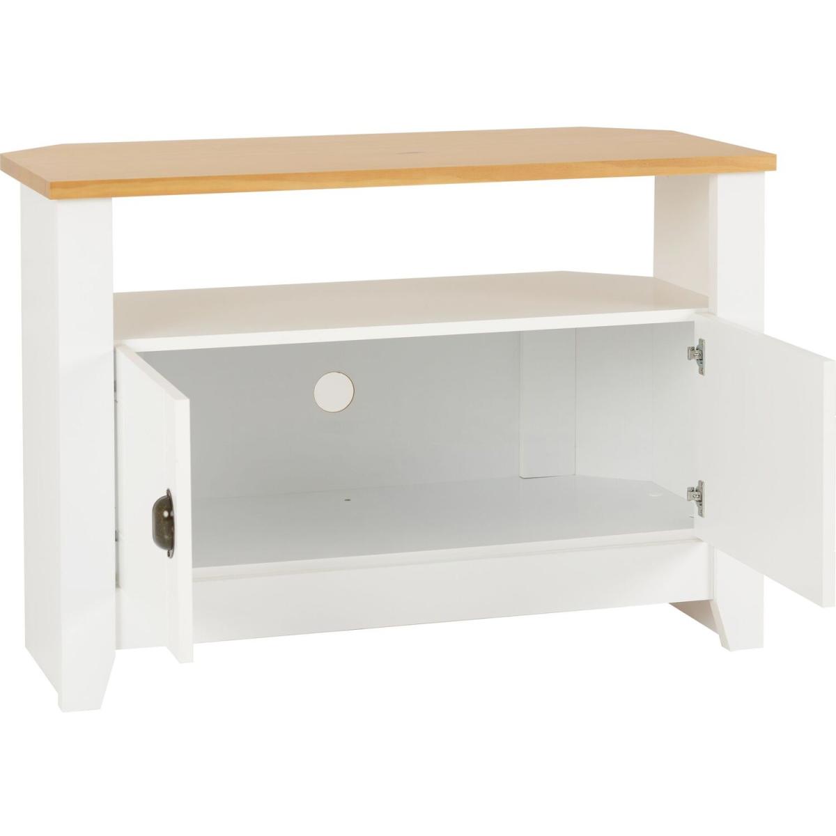 This Ludlow TV Unit in White Oak Lacquer comes with cupboard space for storing away cable boxes and set top boxes. Designed with 2 doors with metal handles, this TV unit also features a pine top panel with an oak varnish