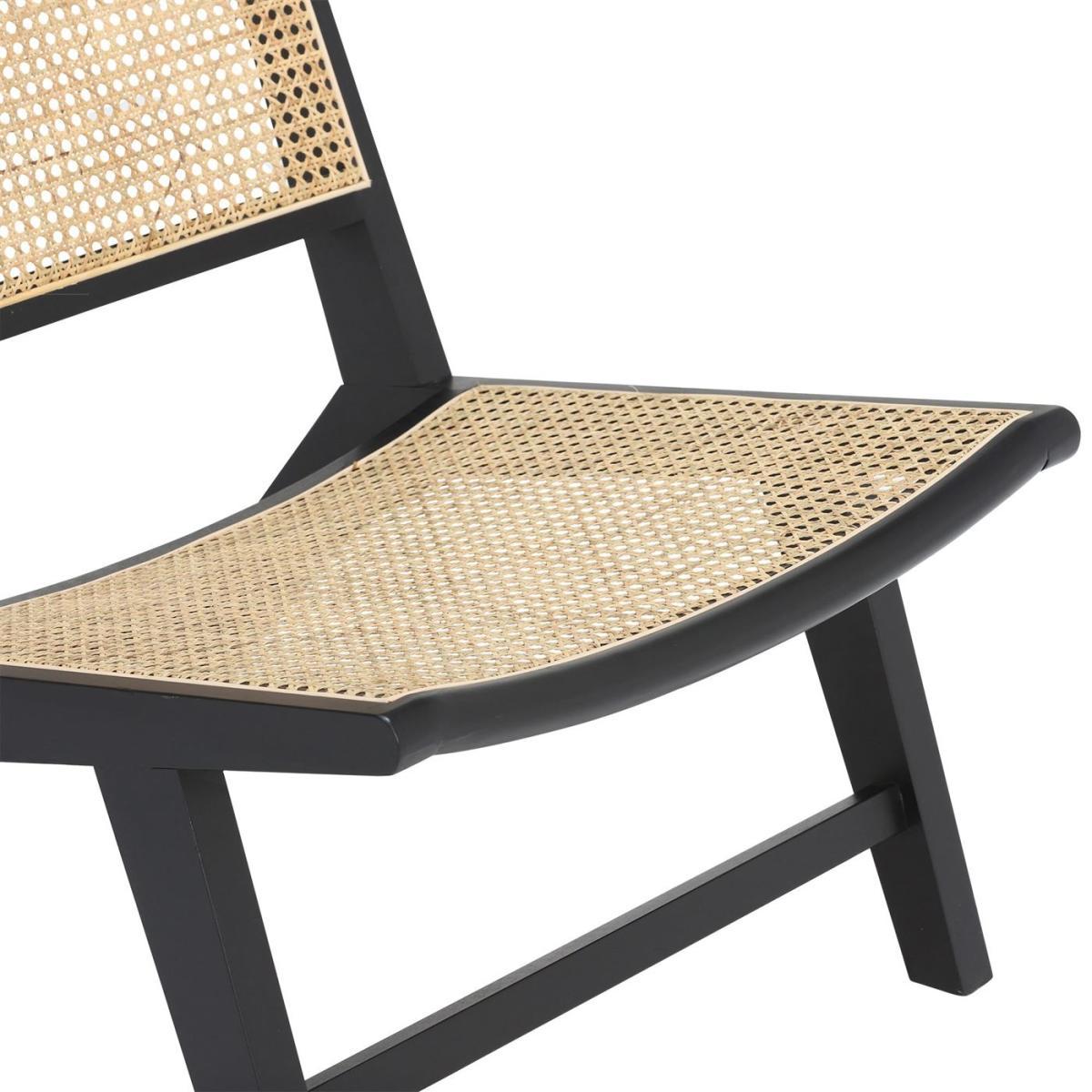 I love this chair for its clean, modern silhouette combined with natural organisation, making it a versatile addition to various interiors. Its black beech frame offers a sleek contrast to the cane back, giving it a subtle yet stylish edge. It works particularly well in contemporary or minimalist settings but can also add warmth to Scandinavian-inspired schemes. For practical styling, pair it with textured cushions or layered throws to soften the look, or position it near a coffee table or as a bedside accent. Its neutral tones and materials mean it pairs effortlessly with both bold and muted colour palettes, making it a flexible piece for adding character to any space.