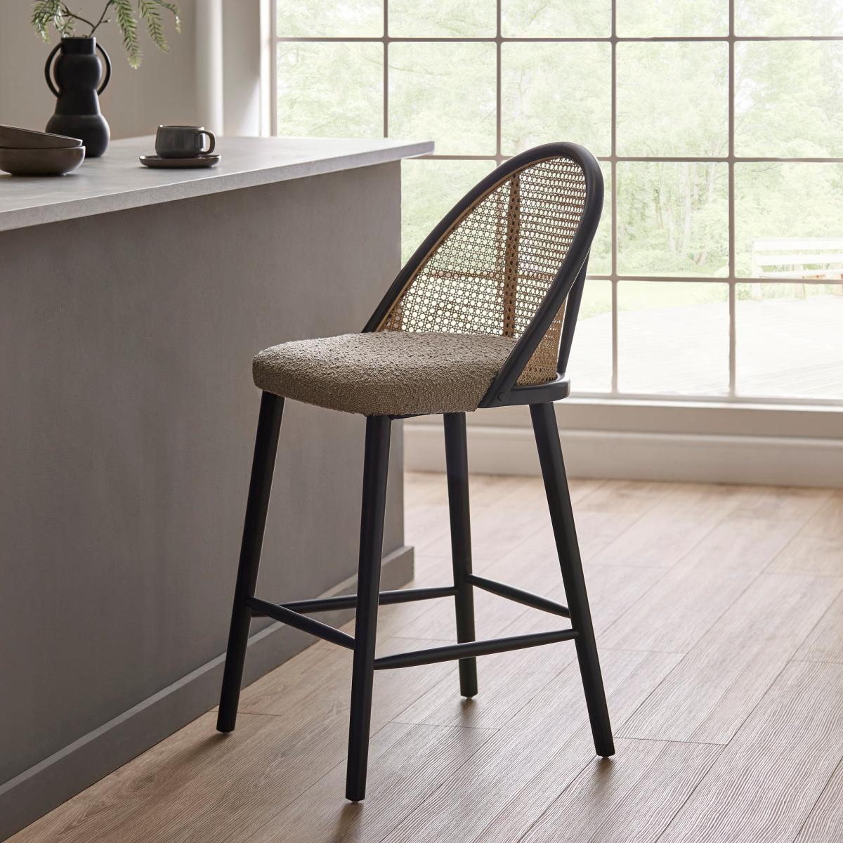Stylish and sleek, this funky bar stool will bring both soft and hard looks and textures into your home, providing you and your guests with comfortable and attractive seating. The cane design and soft upholstered seat bring an on trend look and feel to your home.