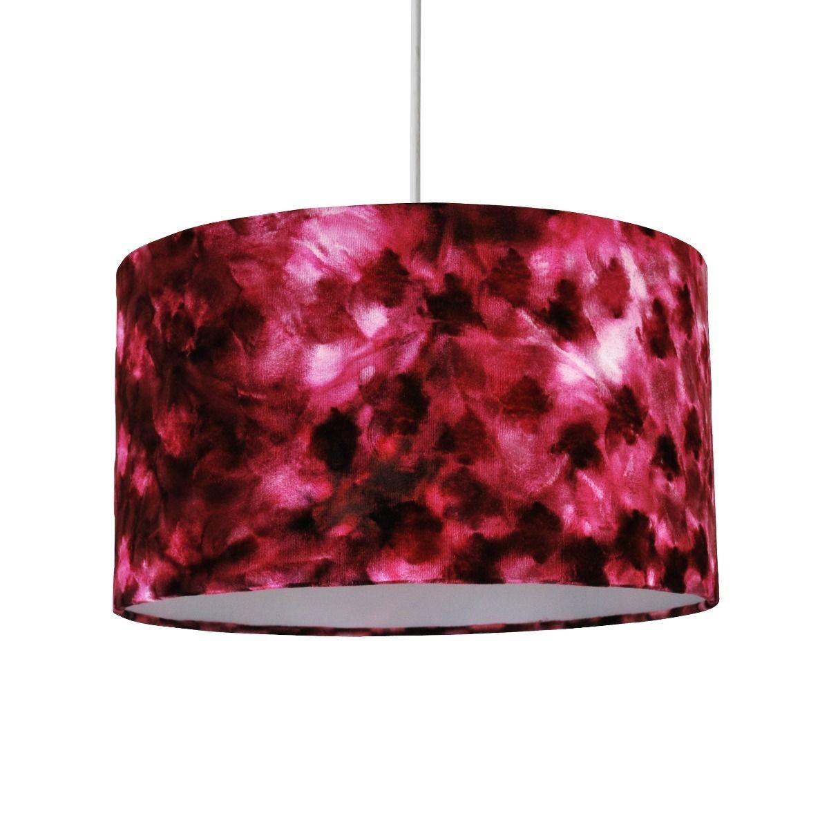 Stunning Berry coloured crushed velvet shade. This 35cm easy fit shade has a luxurious embossed spot pattern rolled edge velour outer, in tones of berry red. This shade is perfect for any room that would benefit from a burst of colour and luxurious design. Ideal for fitting in bedrooms, hallways and living rooms, this shade gives off a gorgeous glow when lit.